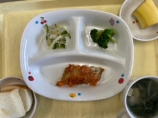 今日のランチは鯖のトマトチーズ焼きです。