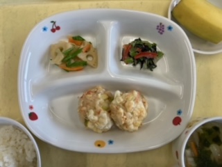 今日のランチは豆腐とはんぺんのふわふわ焼きです。