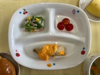 今日のランチは白身魚のキャロット焼きです。