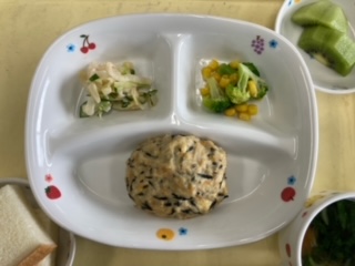 今日のランチは豆腐とひじきのハンバーグです。