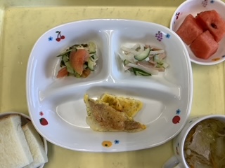 今日のランチは魚のピカタです。