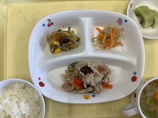 今日のランチはなすと豚肉の味噌炒めです。