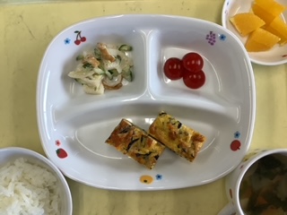今日のランチはひじき入り厚焼き卵です。