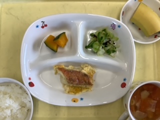 今日のランチは魚のピカタです。