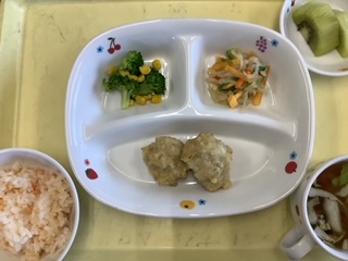 今日のランチはお楽しみ会 鮭ごはんです。