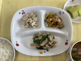 今日のランチはにら肉炒めです。