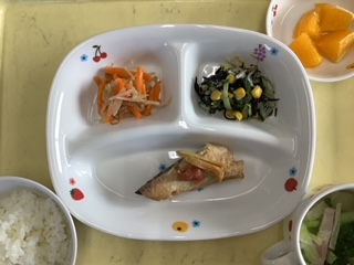 今日のランチは鯖の梅しょうが煮です。