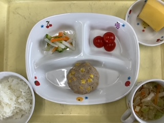 今日のランチは肉団子のコーン蒸しです。