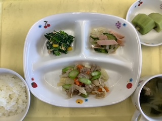 今日のランチは豚肉のアスパラ炒めです。