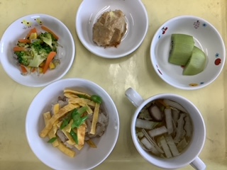 今日のランチはお楽しみ会 そぼろちらし寿司です。
