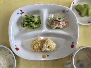 今日のランチは豆腐とはんぺんのふわふわ焼きです。