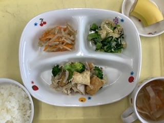 今日のランチは豚肉と厚揚げの和風炒めです。
