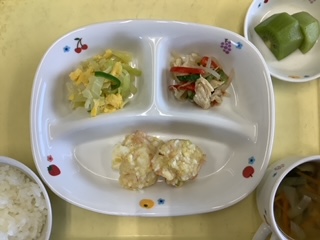 今日のランチは豆腐とはんぺんのふわふわ焼きです。