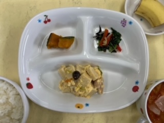 今日のランチは高野豆腐の卵とじです。