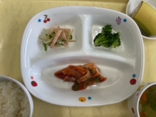 今日のランチは、白身魚の野菜ケチャップかけです。