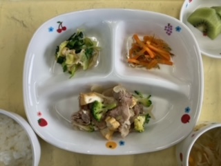 今日のランチは豚肉と厚揚げの和風炒めです。