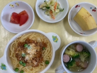 今日のランチはスパゲティミートソースです。
