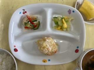 今日のランチは豆腐とはんぺんのふわふわ焼きです。