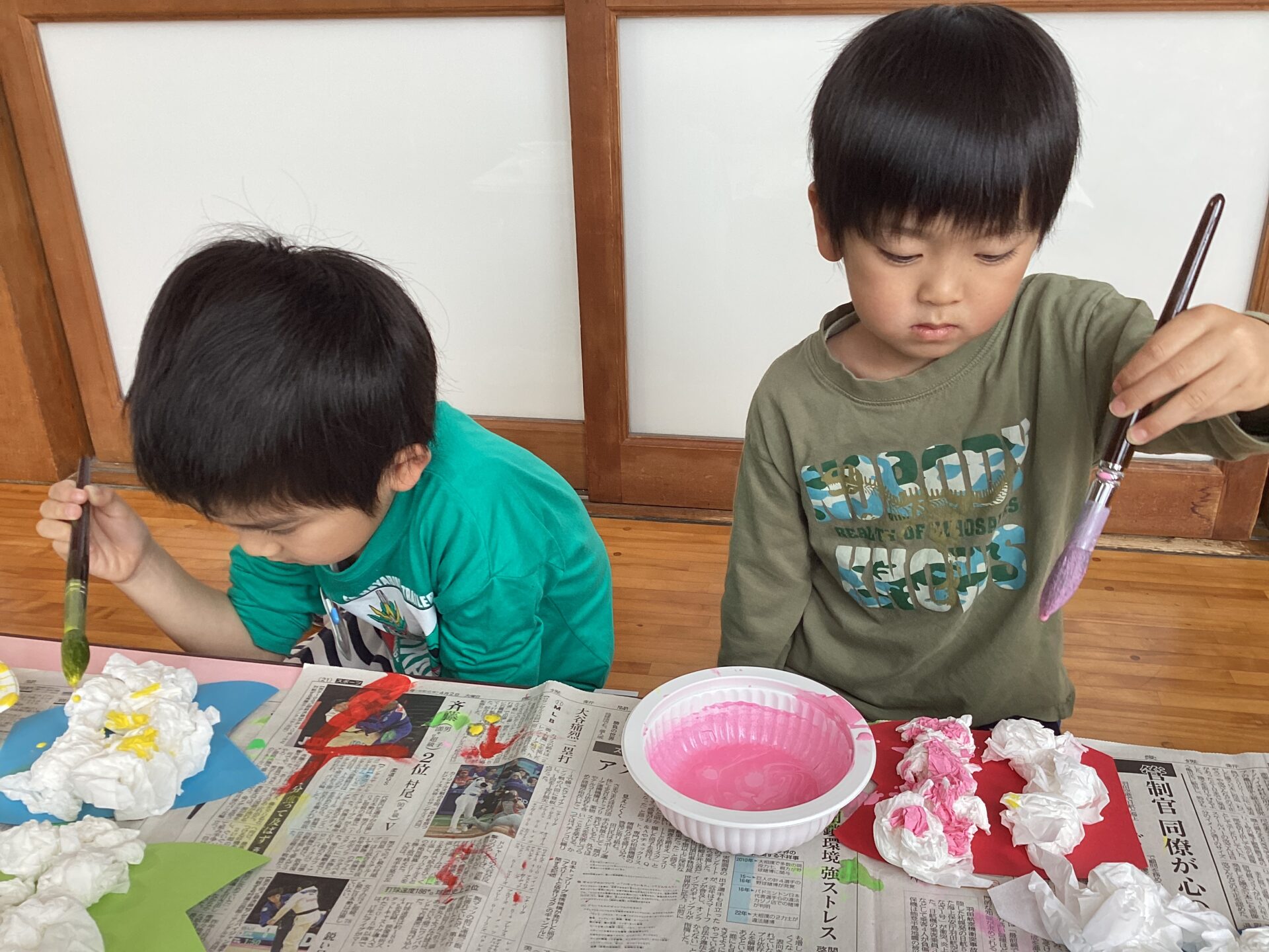 小学校に向けて、年長児はなるべくみんなで制作できるようにしています。
