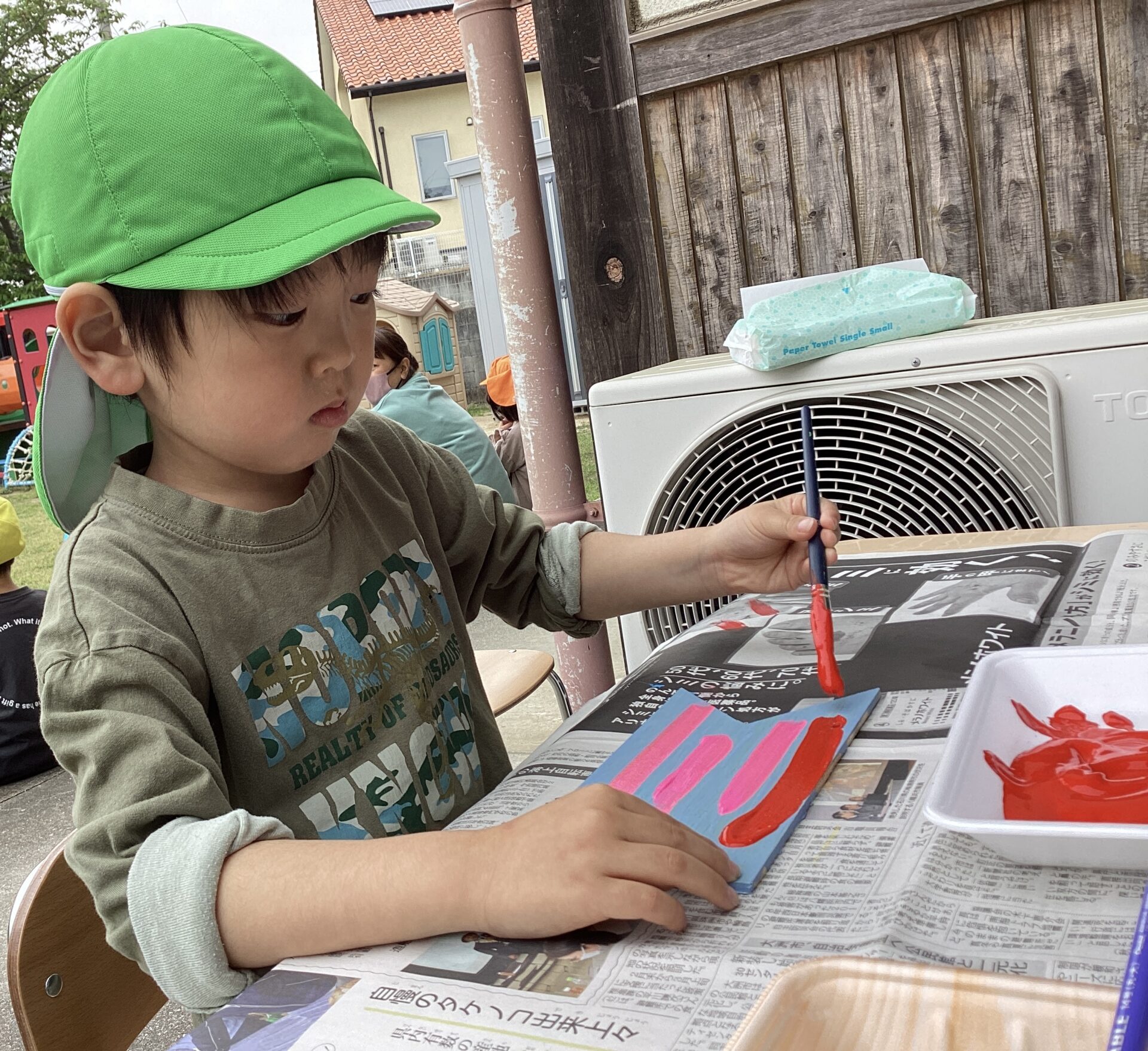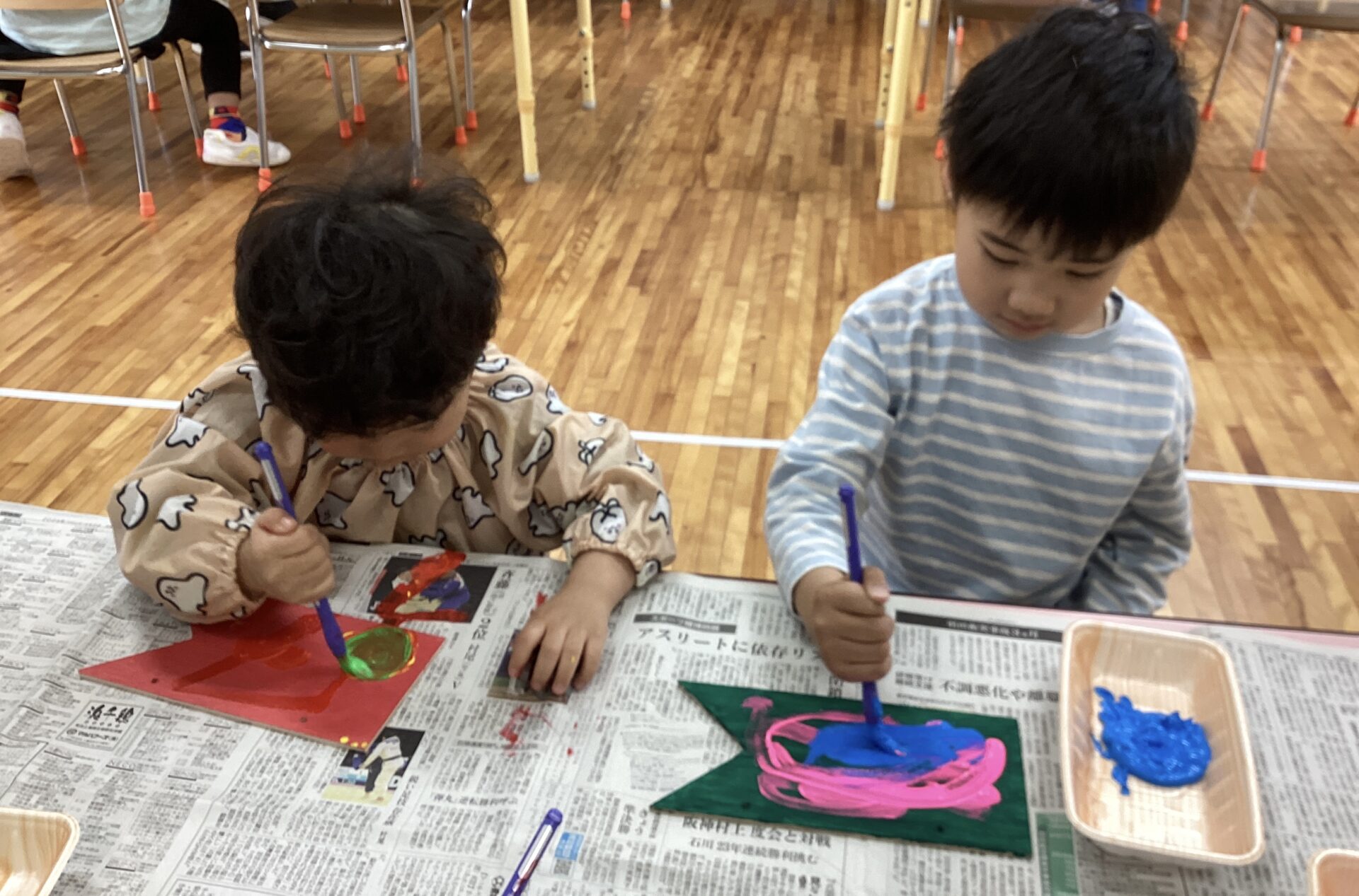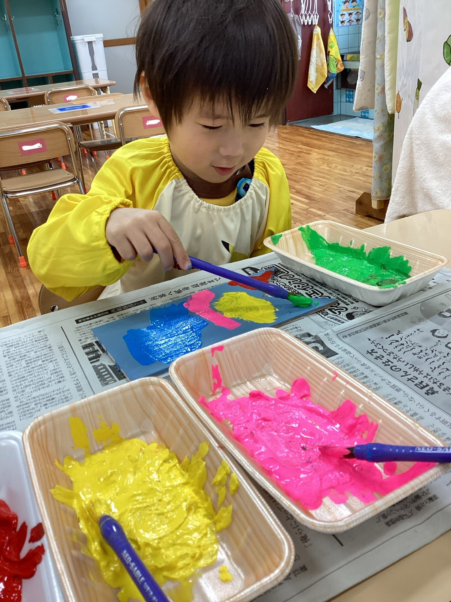 登園するなり、用意されている絵の具をみて引き寄せられる子どももいました😁