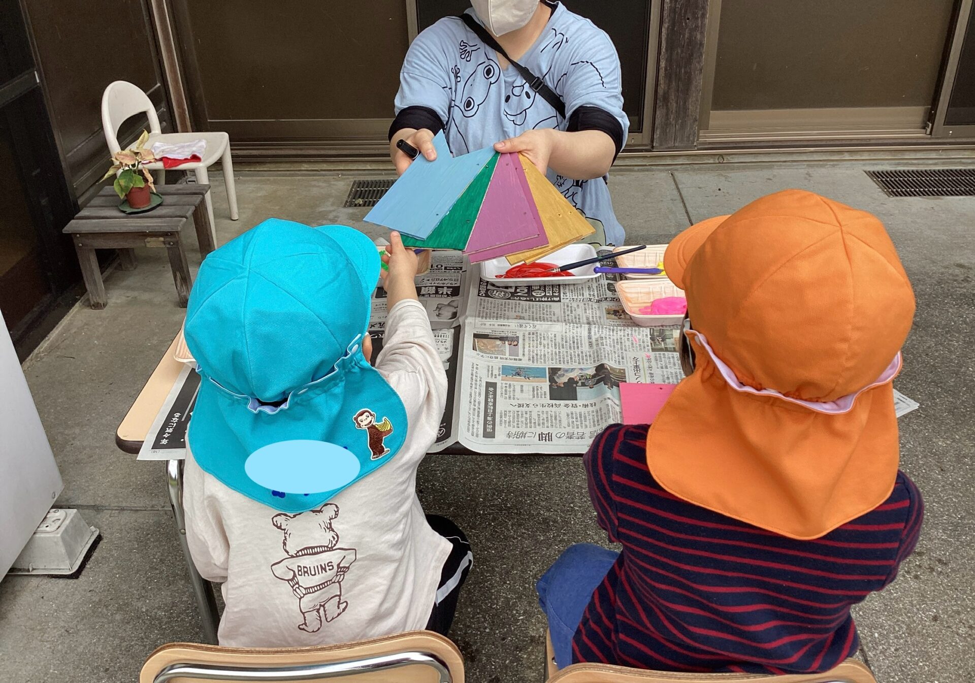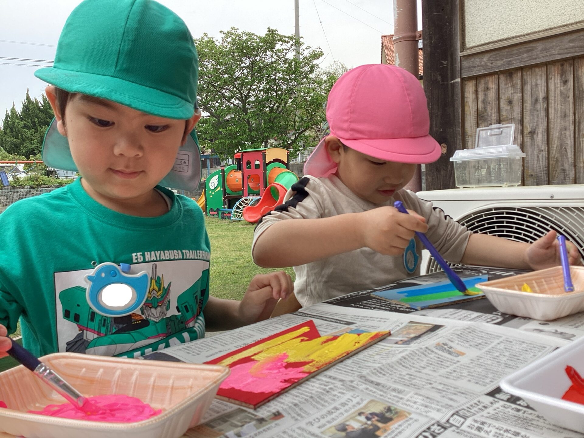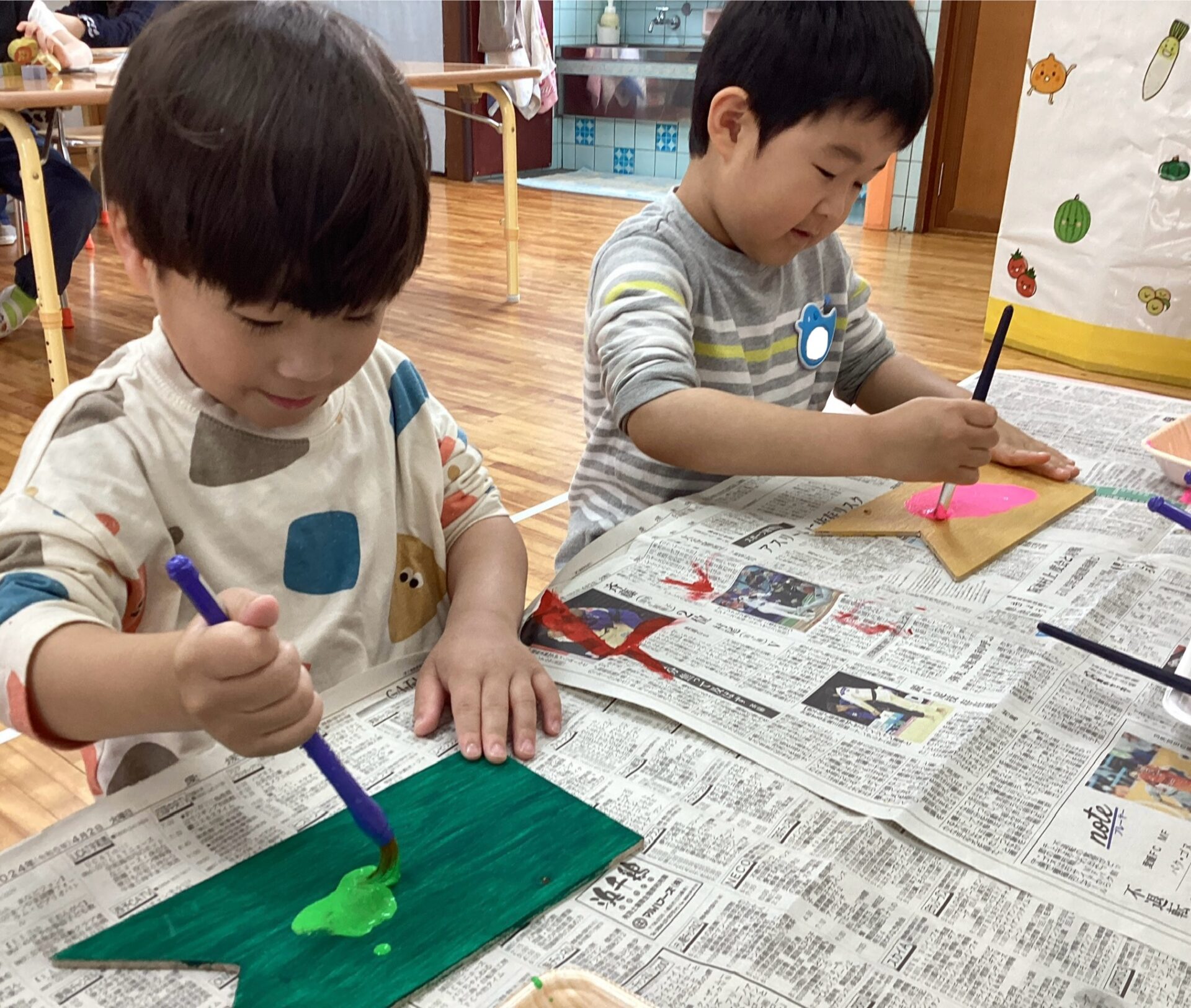 登園するなり、用意されている絵の具をみて引き寄せられる子どももいました😁