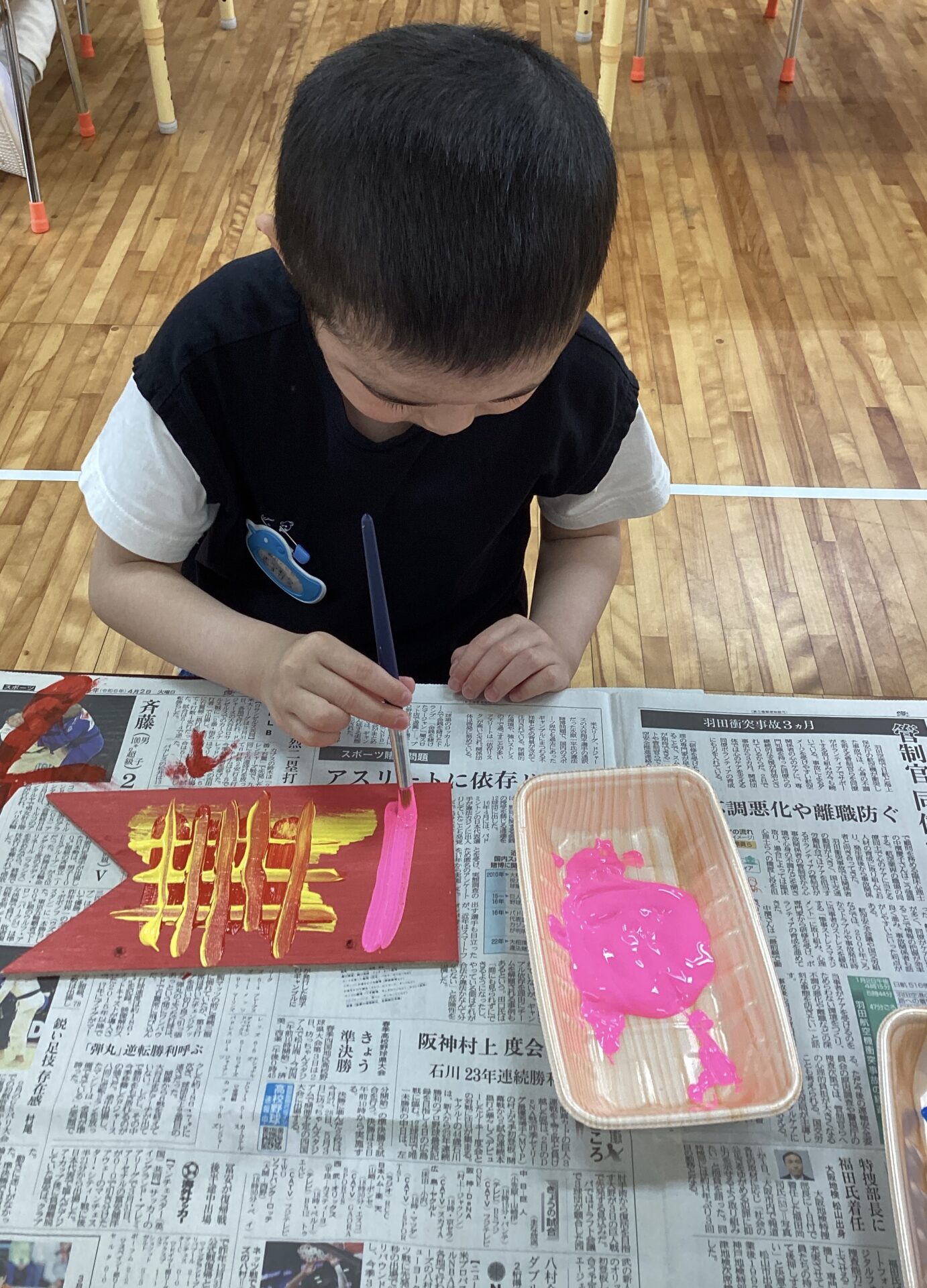 ダイナミックに筆につけて、お絵描きをしていますね😁