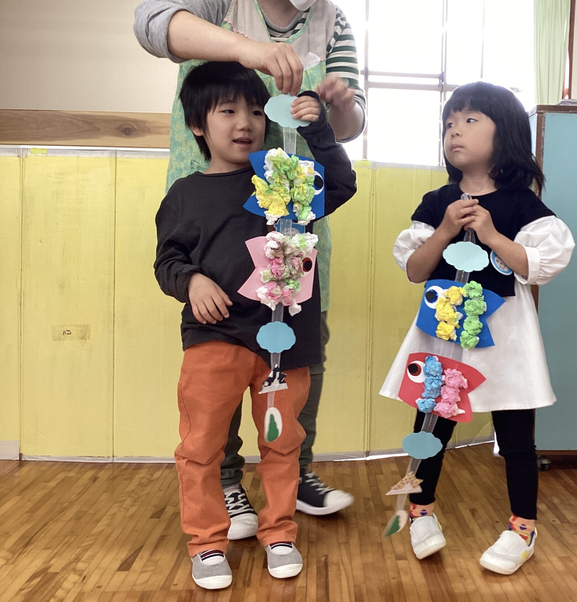 最後に作ったこいのぼりの紹介をしています。