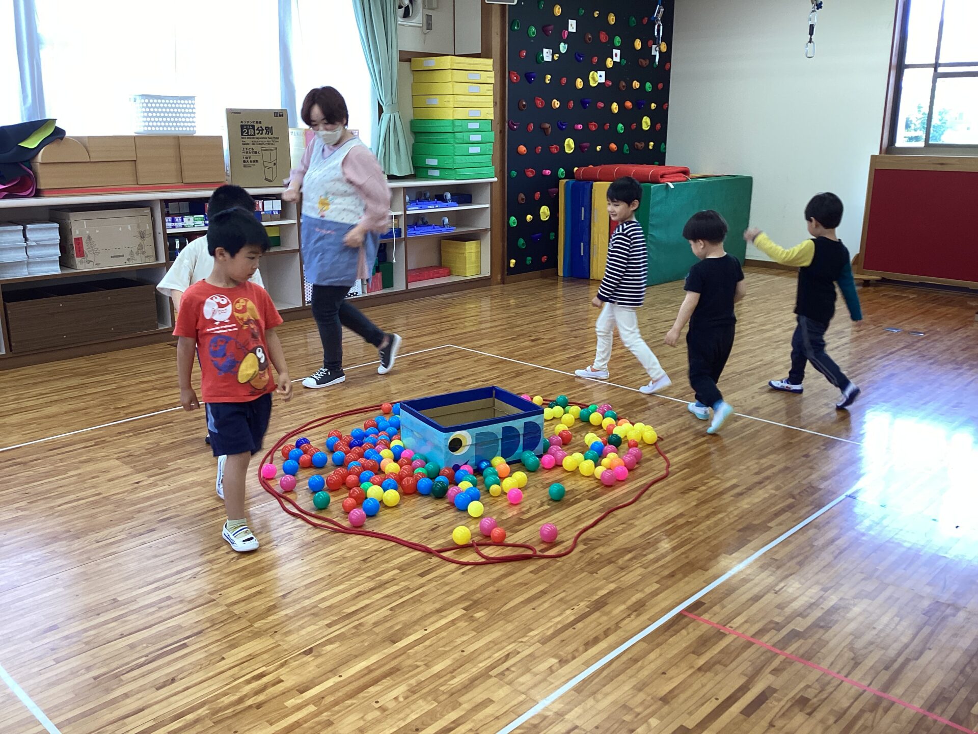 音楽が止まったらボールを箱に入れる、音楽が流れたら歩くことも楽しみながらルールを知り取り組めていました✨