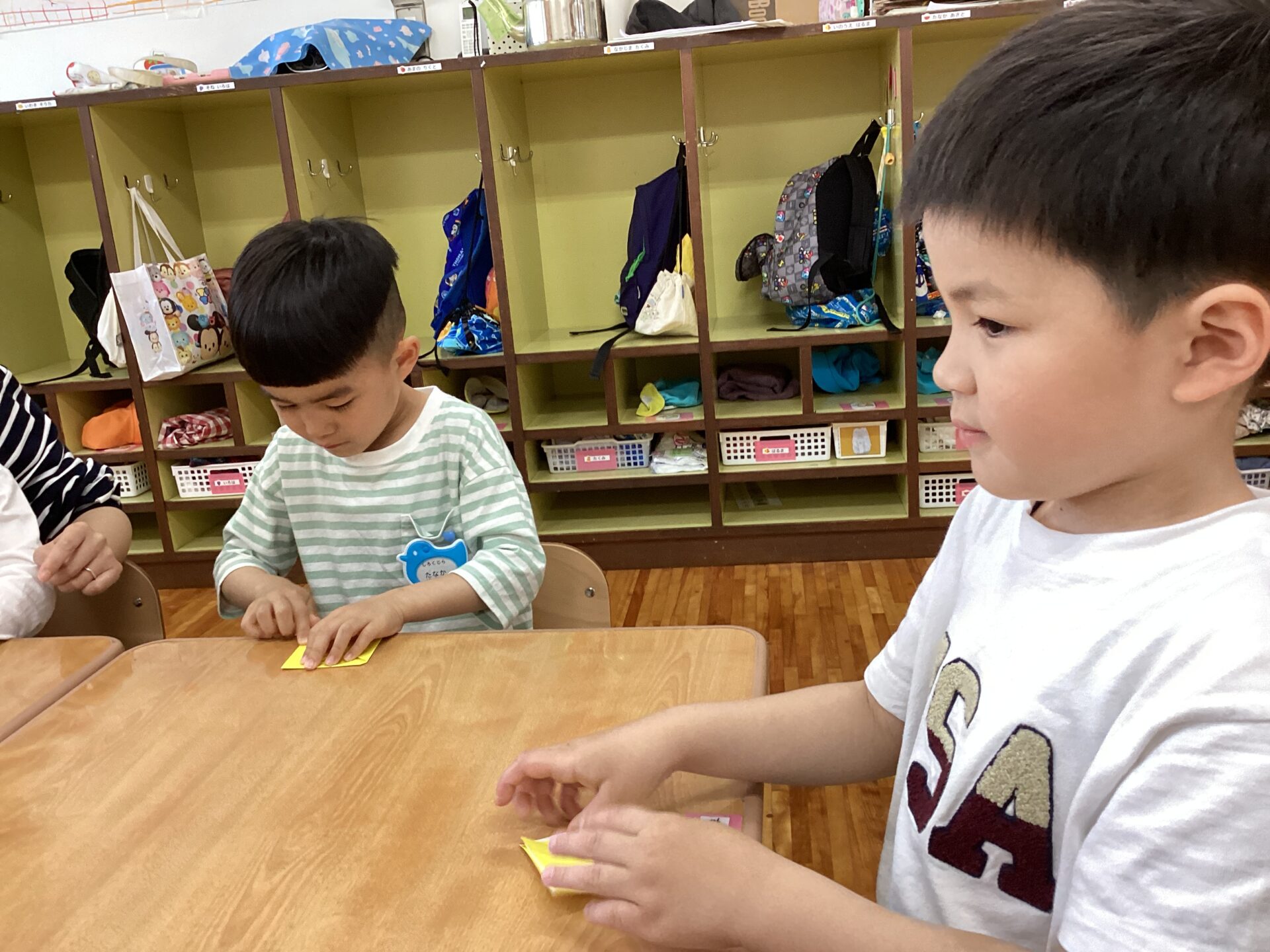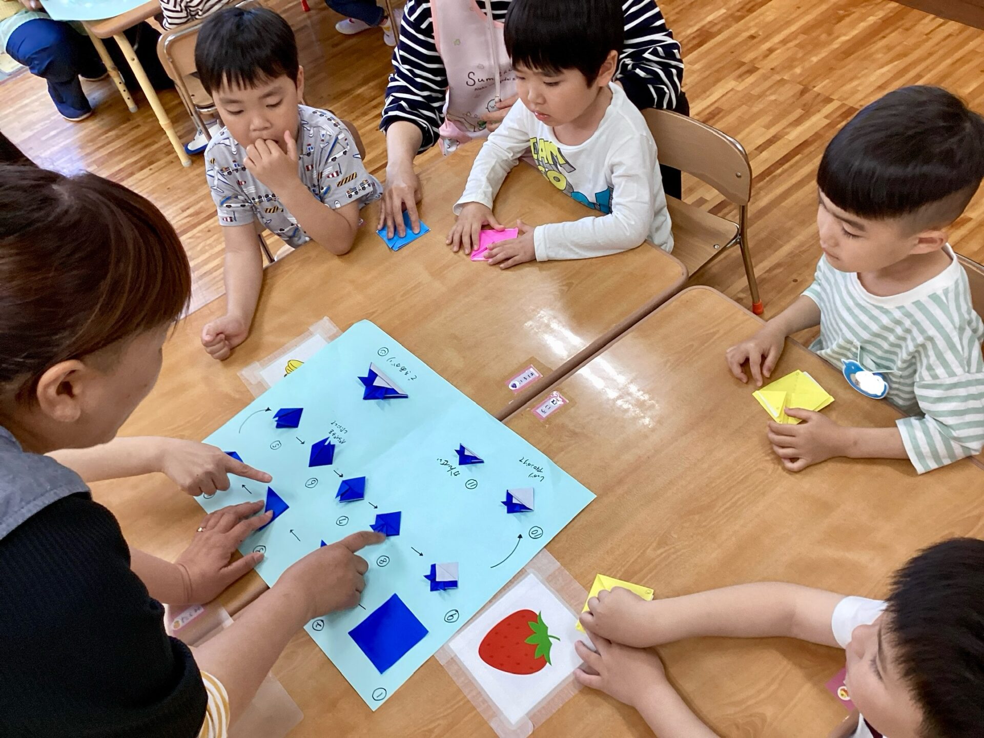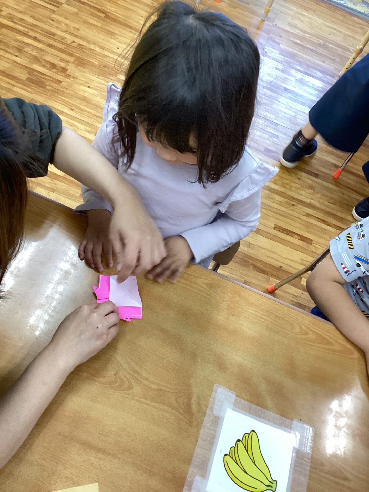 途中、折り方がわからなくなってしまった子どもも