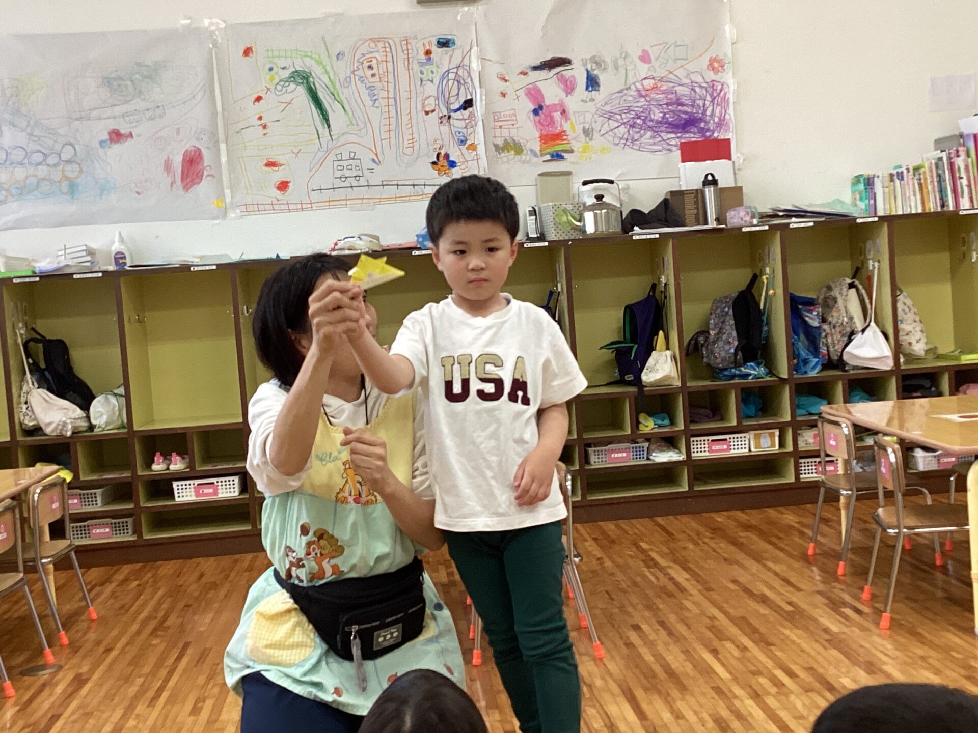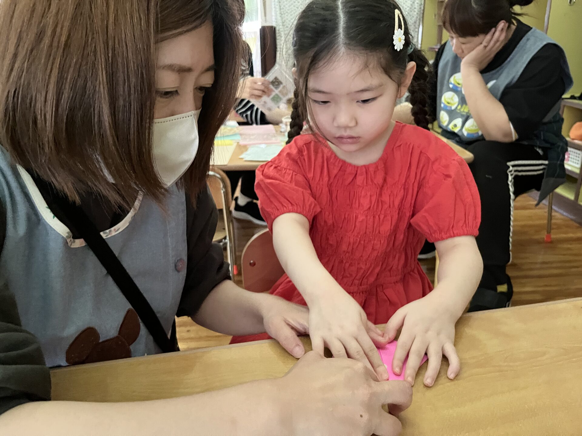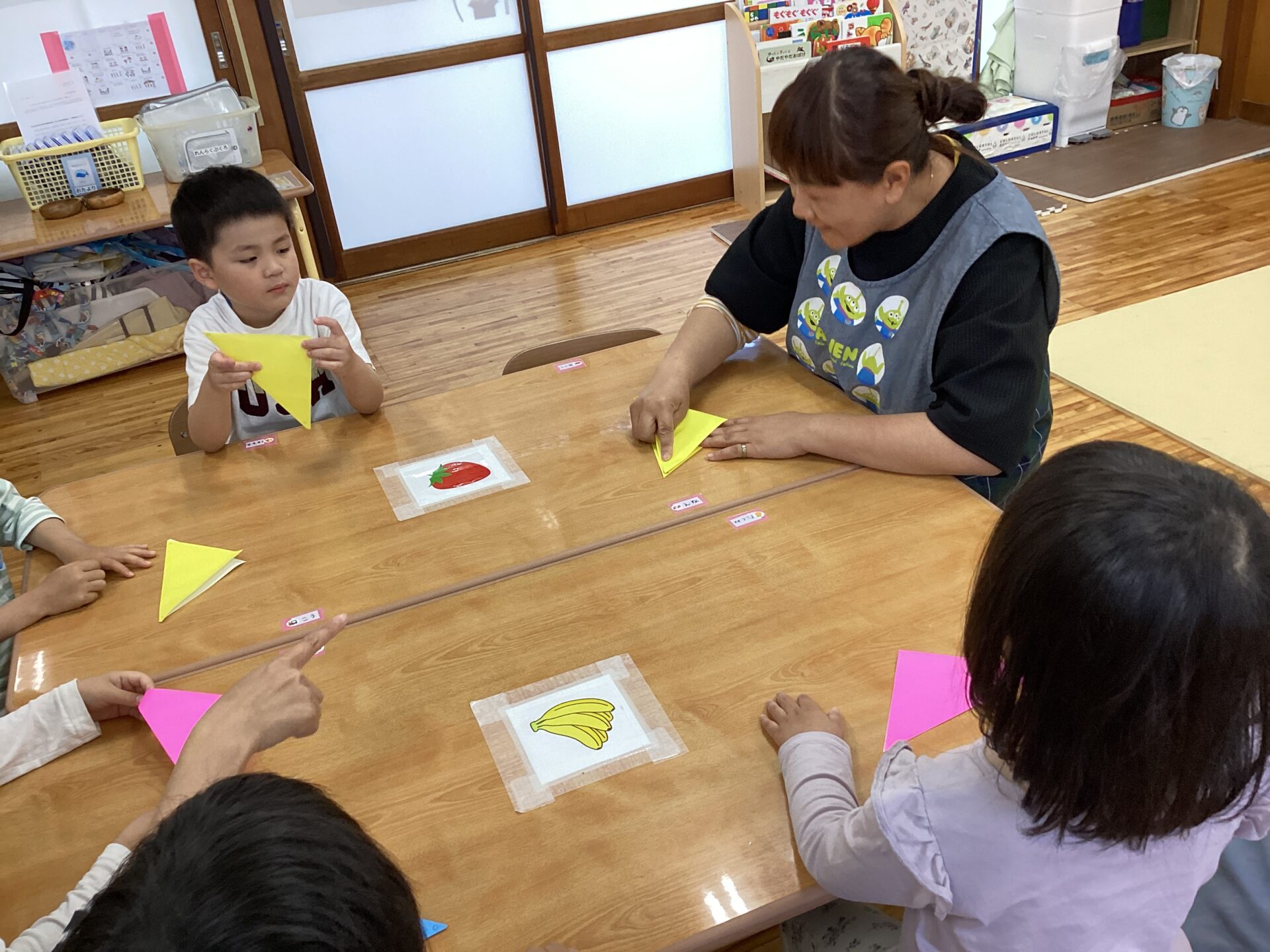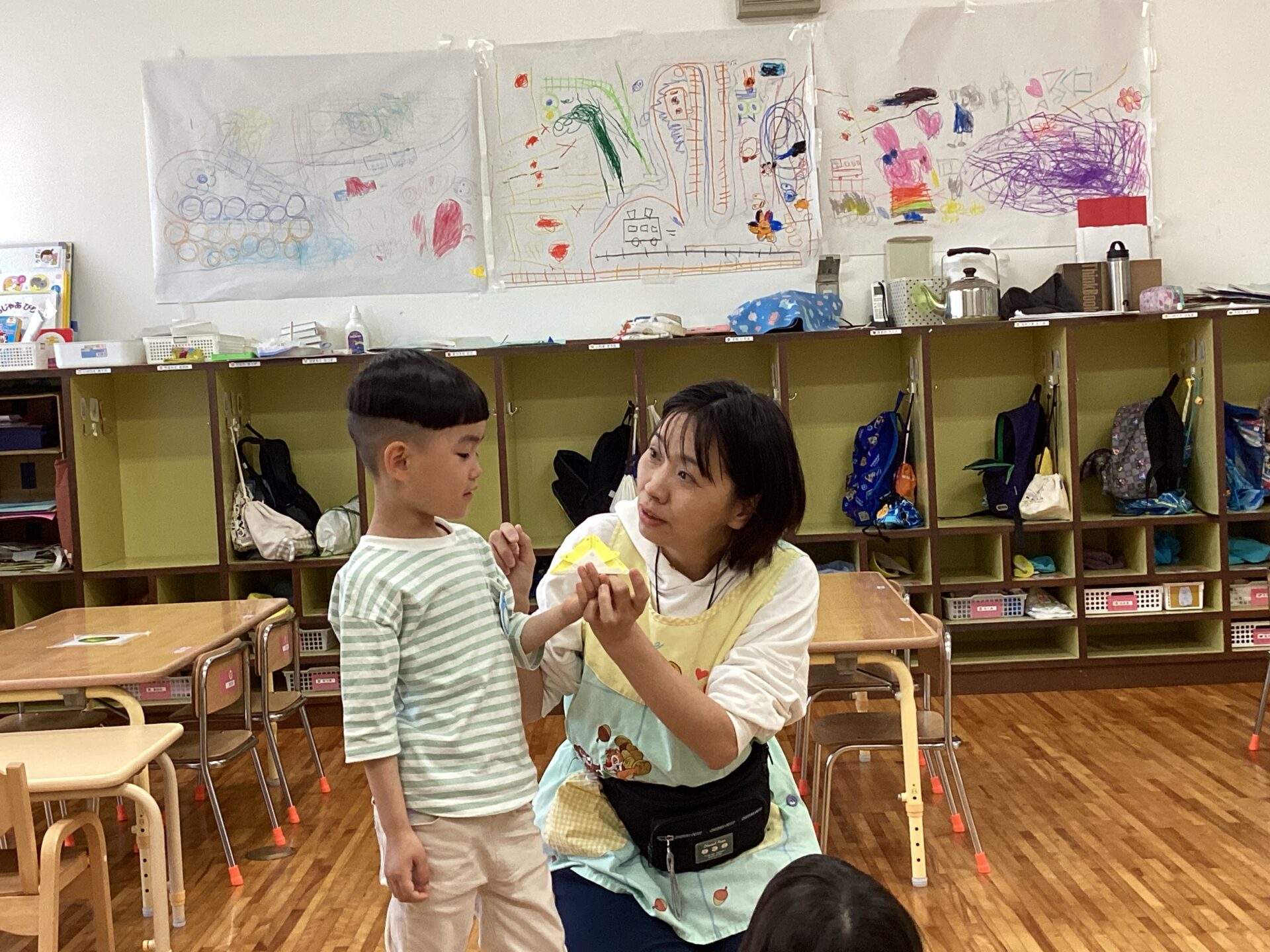 途中、折り方がわからなくなってしまった子どもも