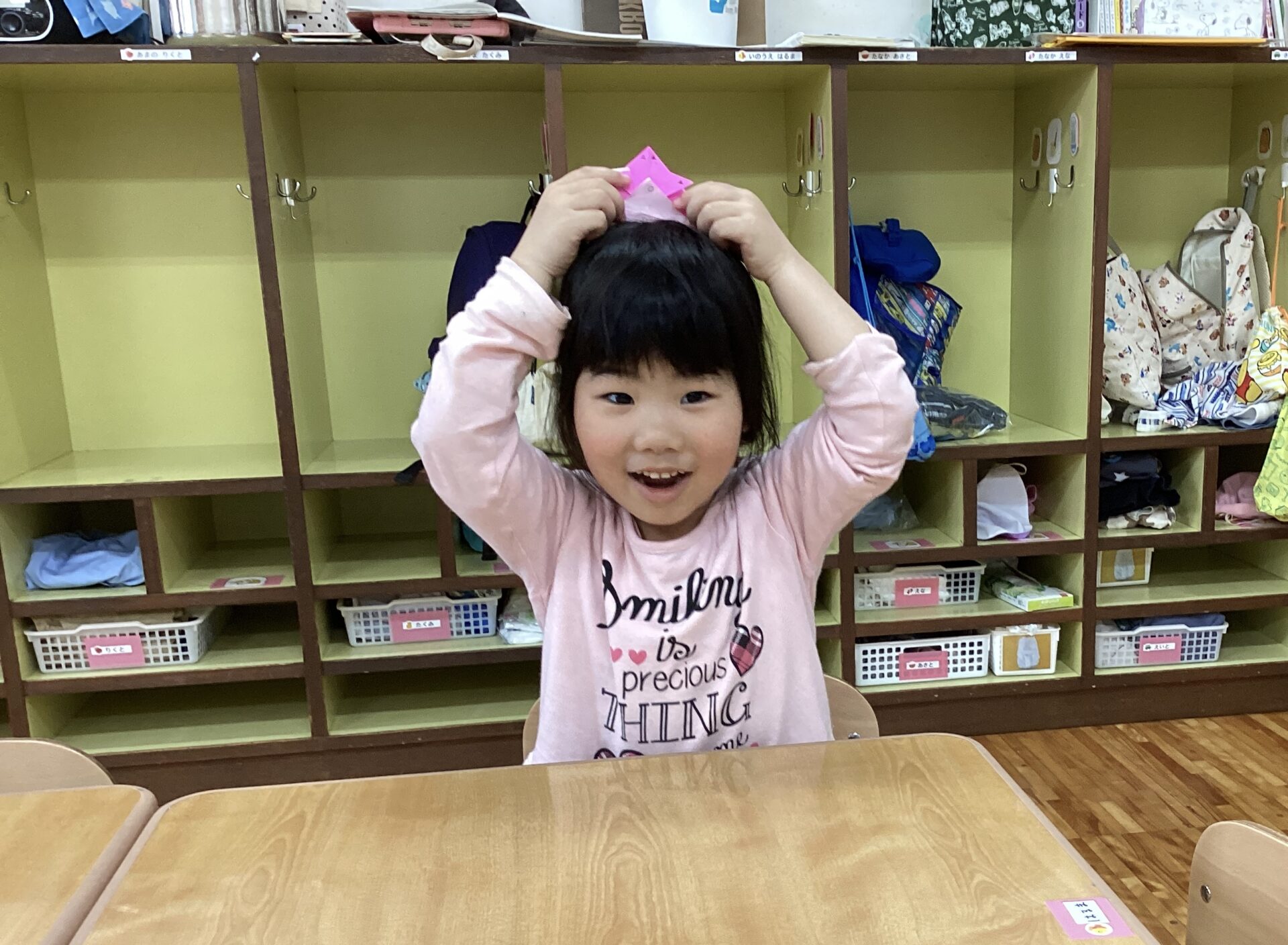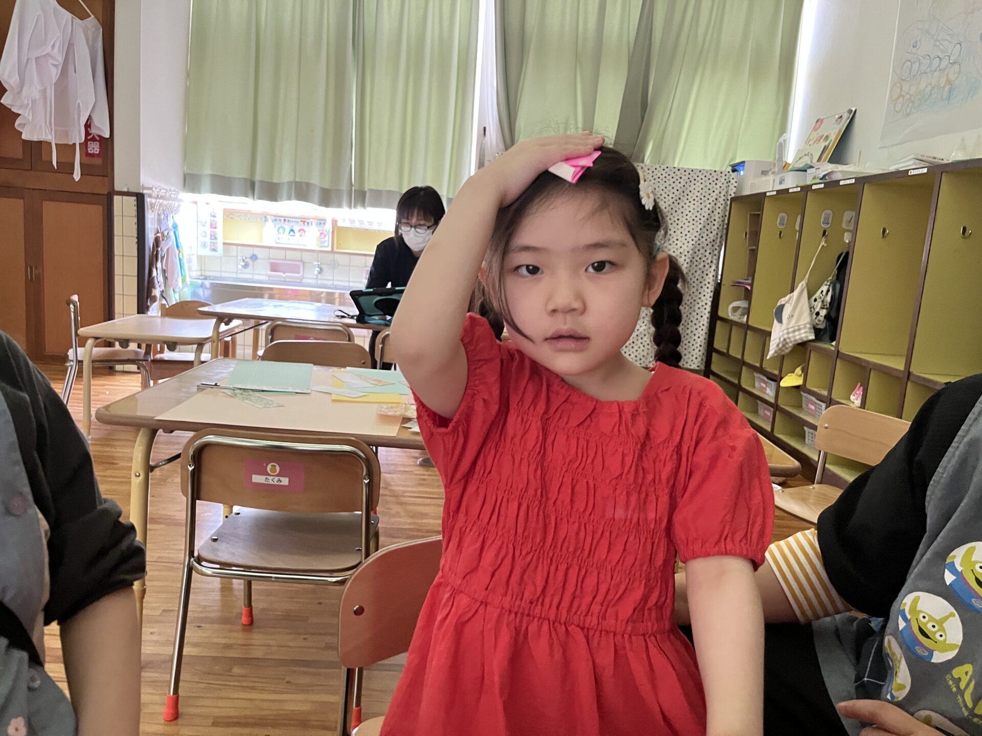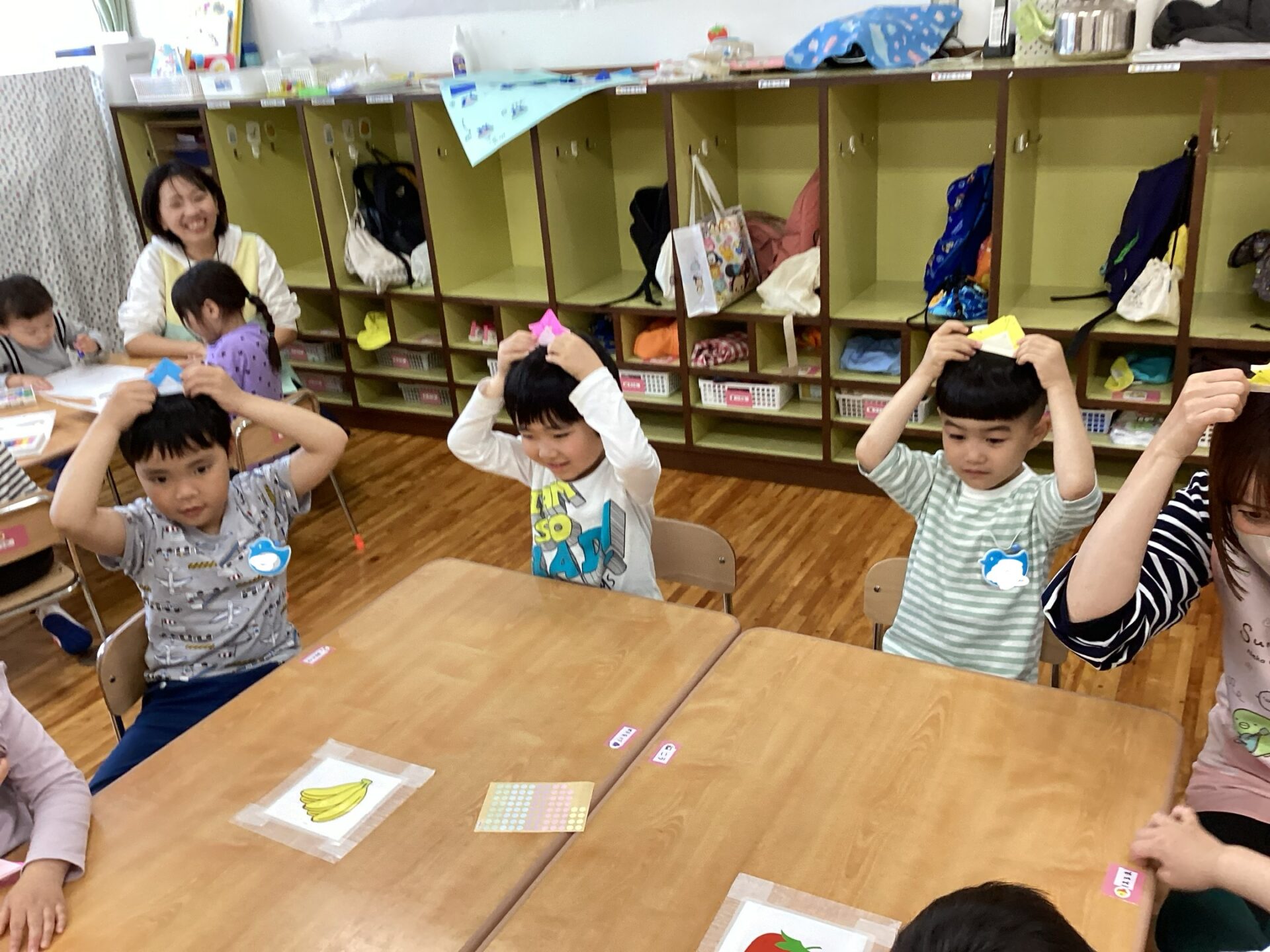 年長児は折り紙でカブトに