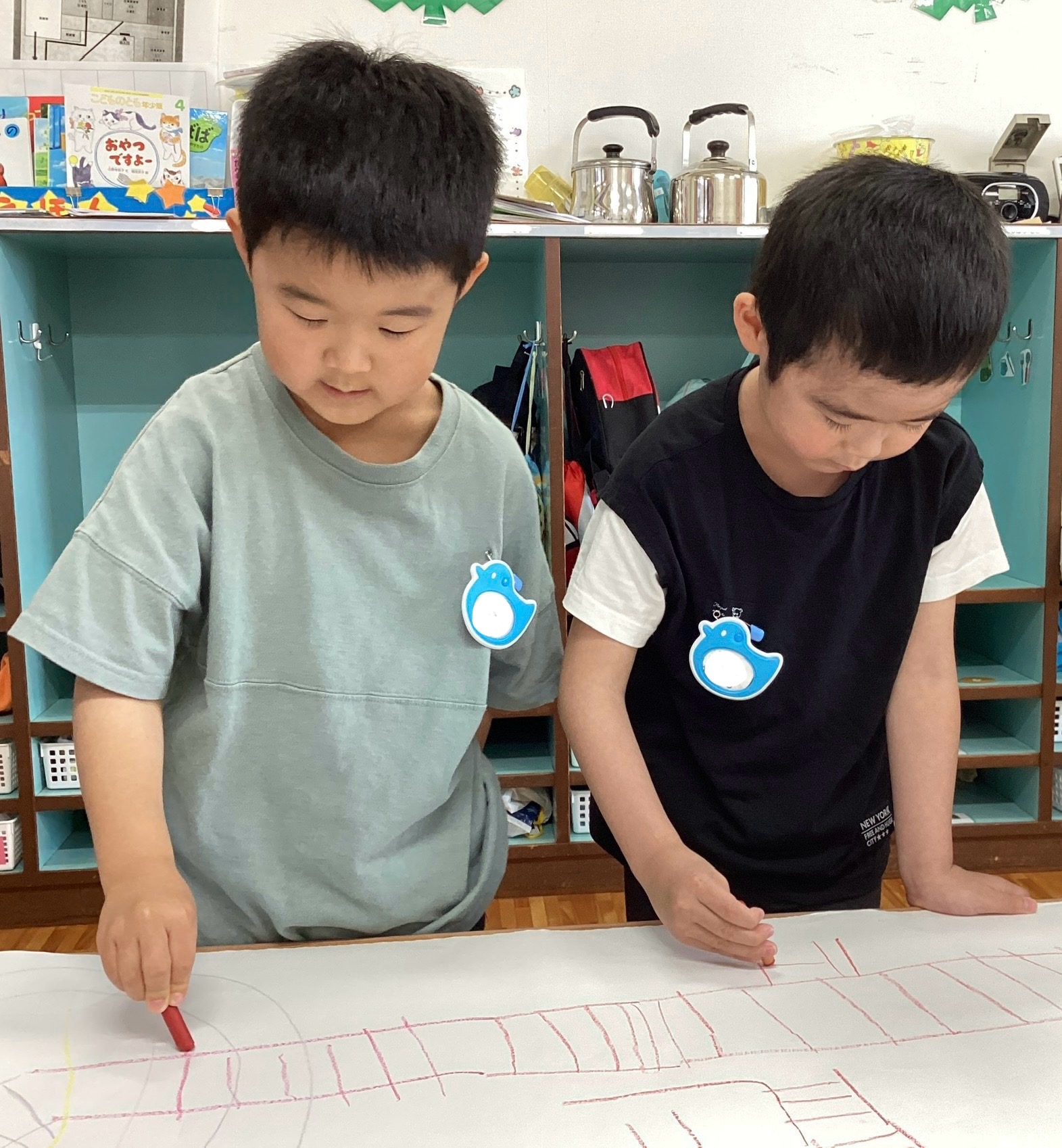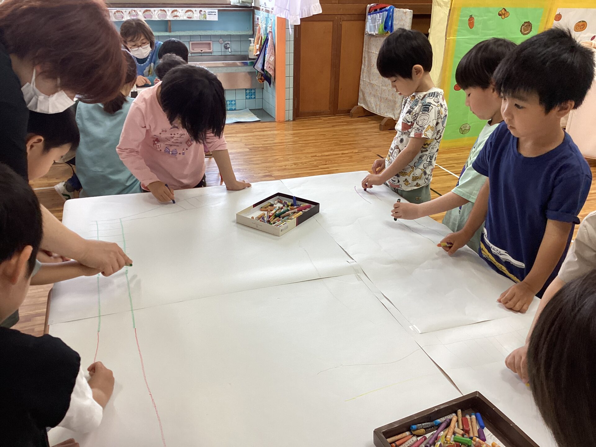何度か取り組んだことがあり、「せんろかこう!」と子ども自身から描く様子が見られていました。
