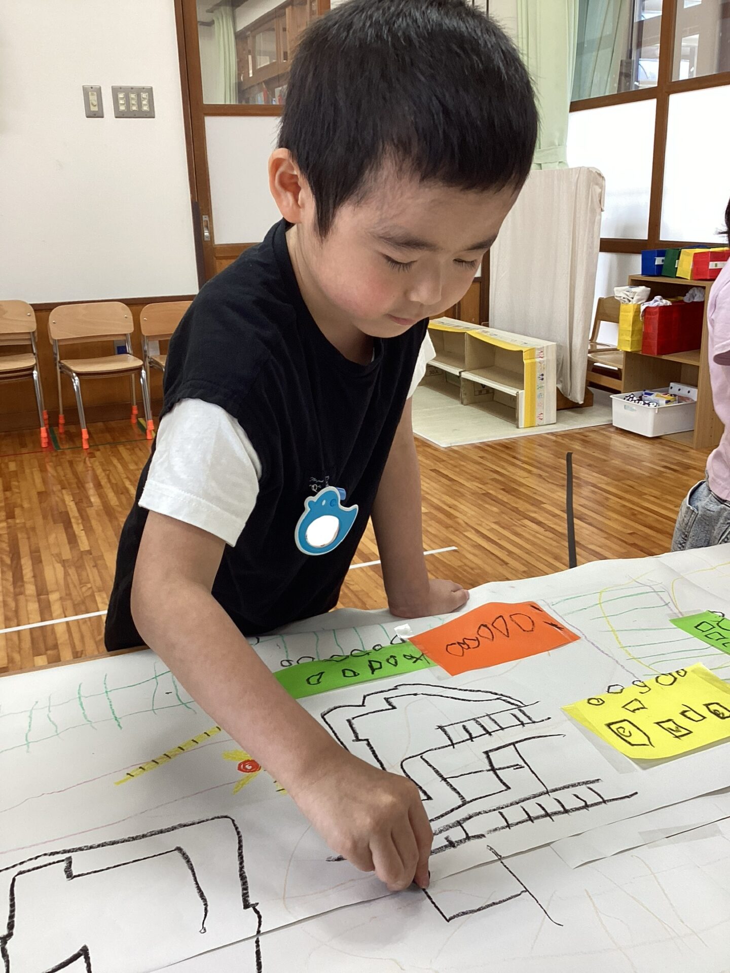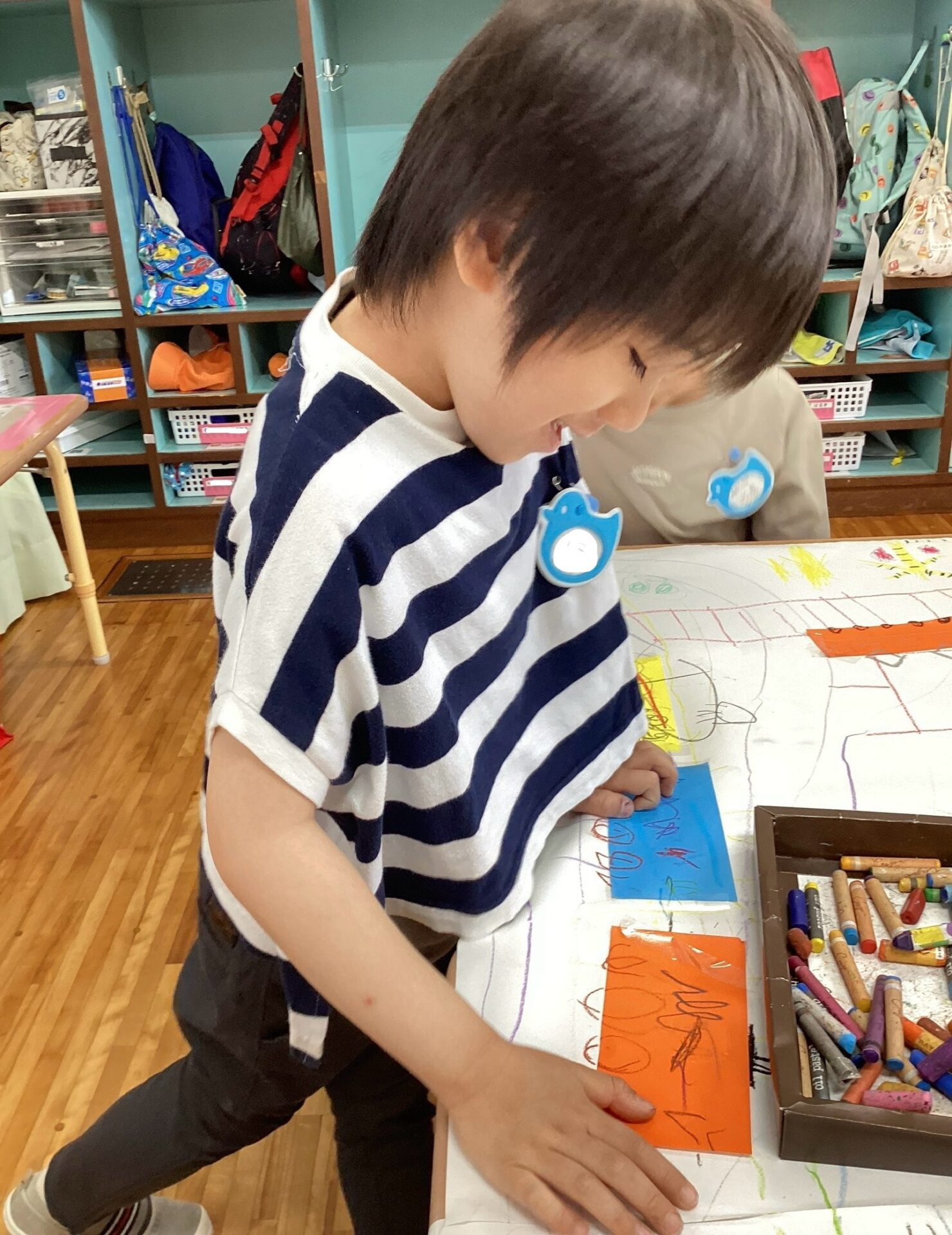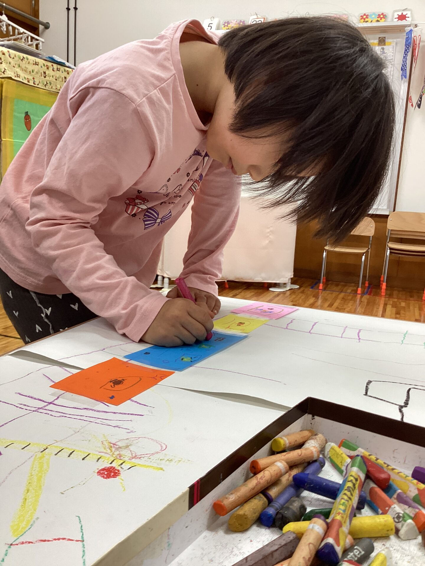 椅子に座って、とりのこ用紙に自由にお絵描き🖍️