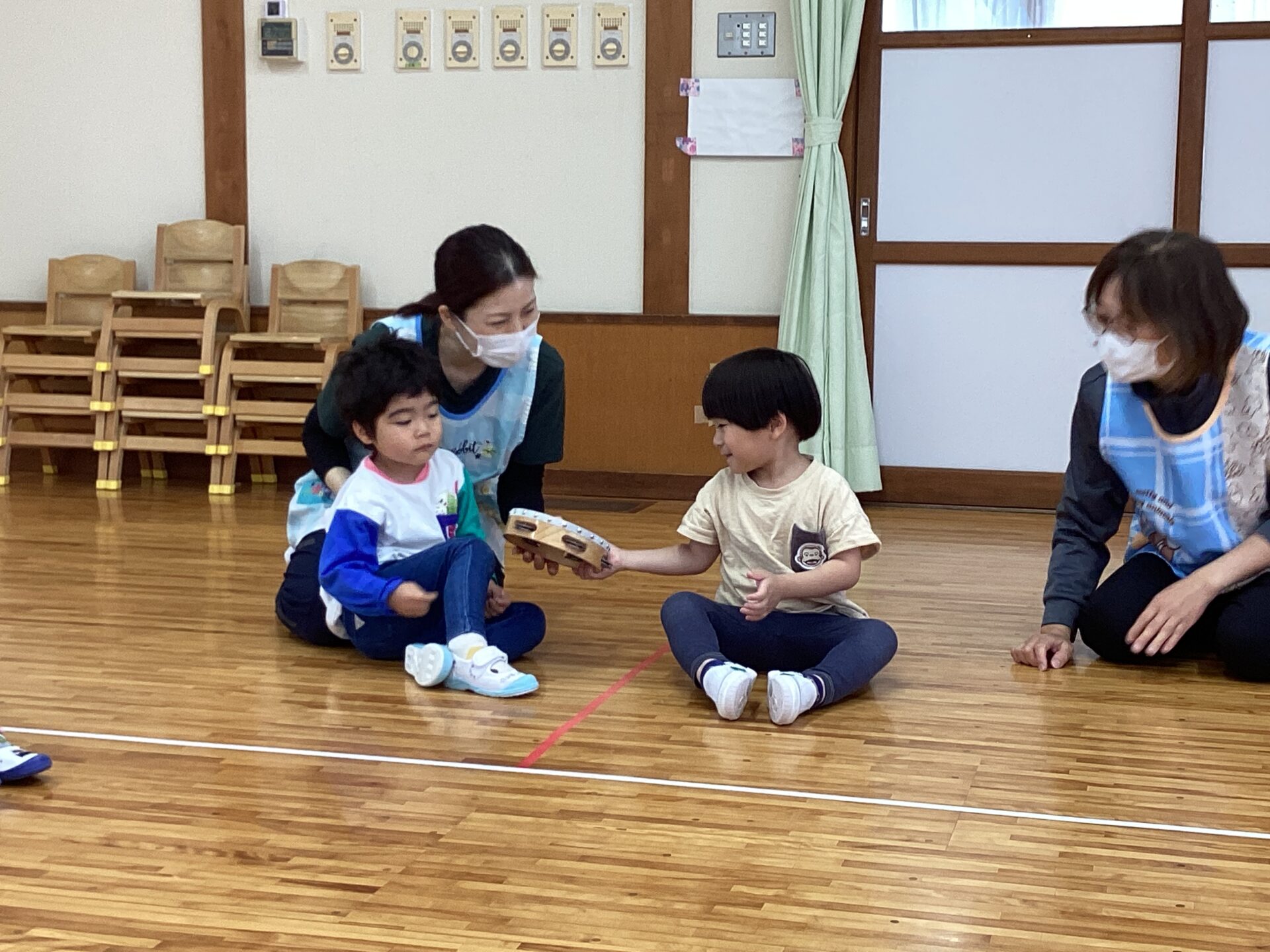 隣の友だちにタンバリンも渡せていたね👏