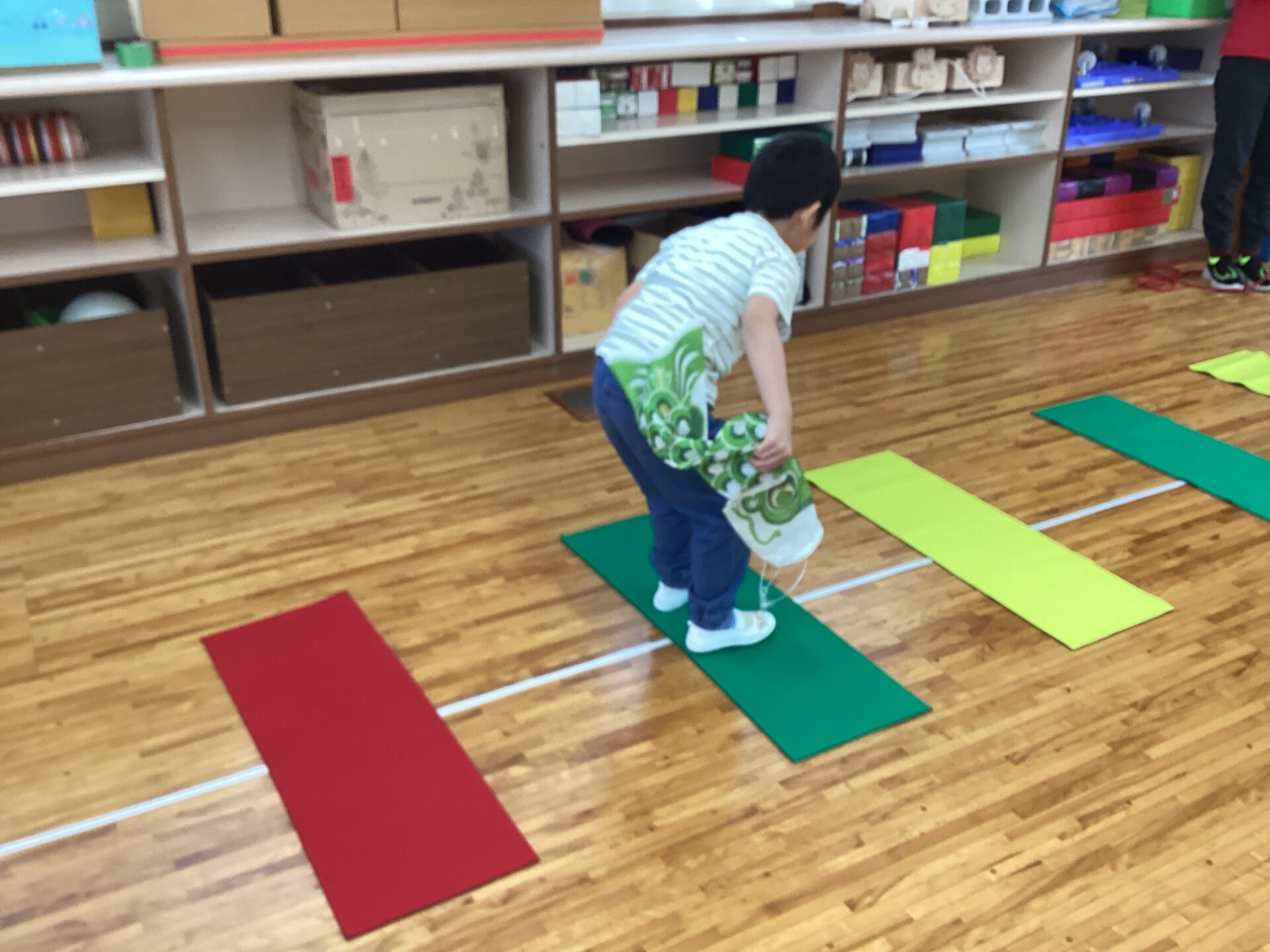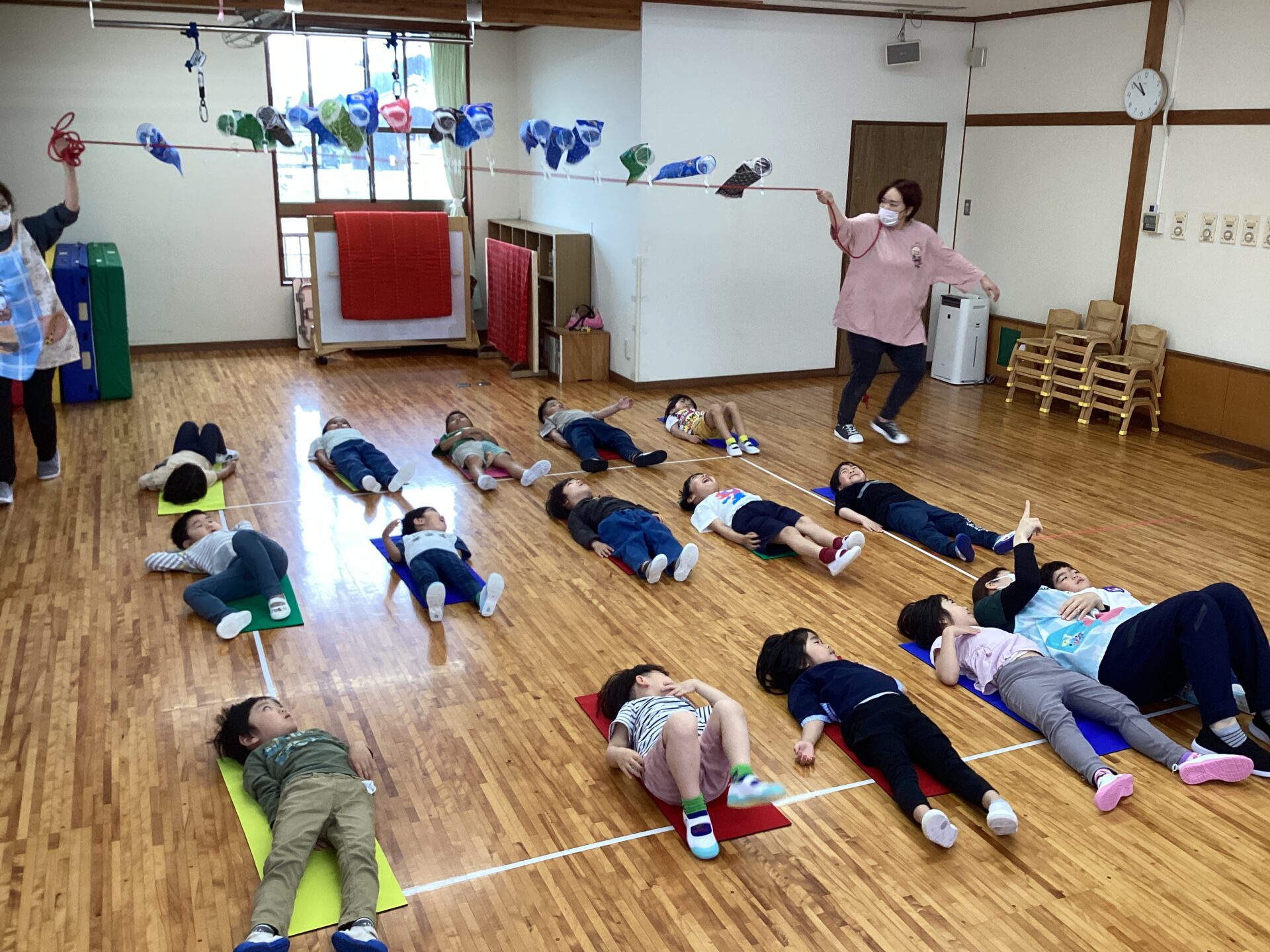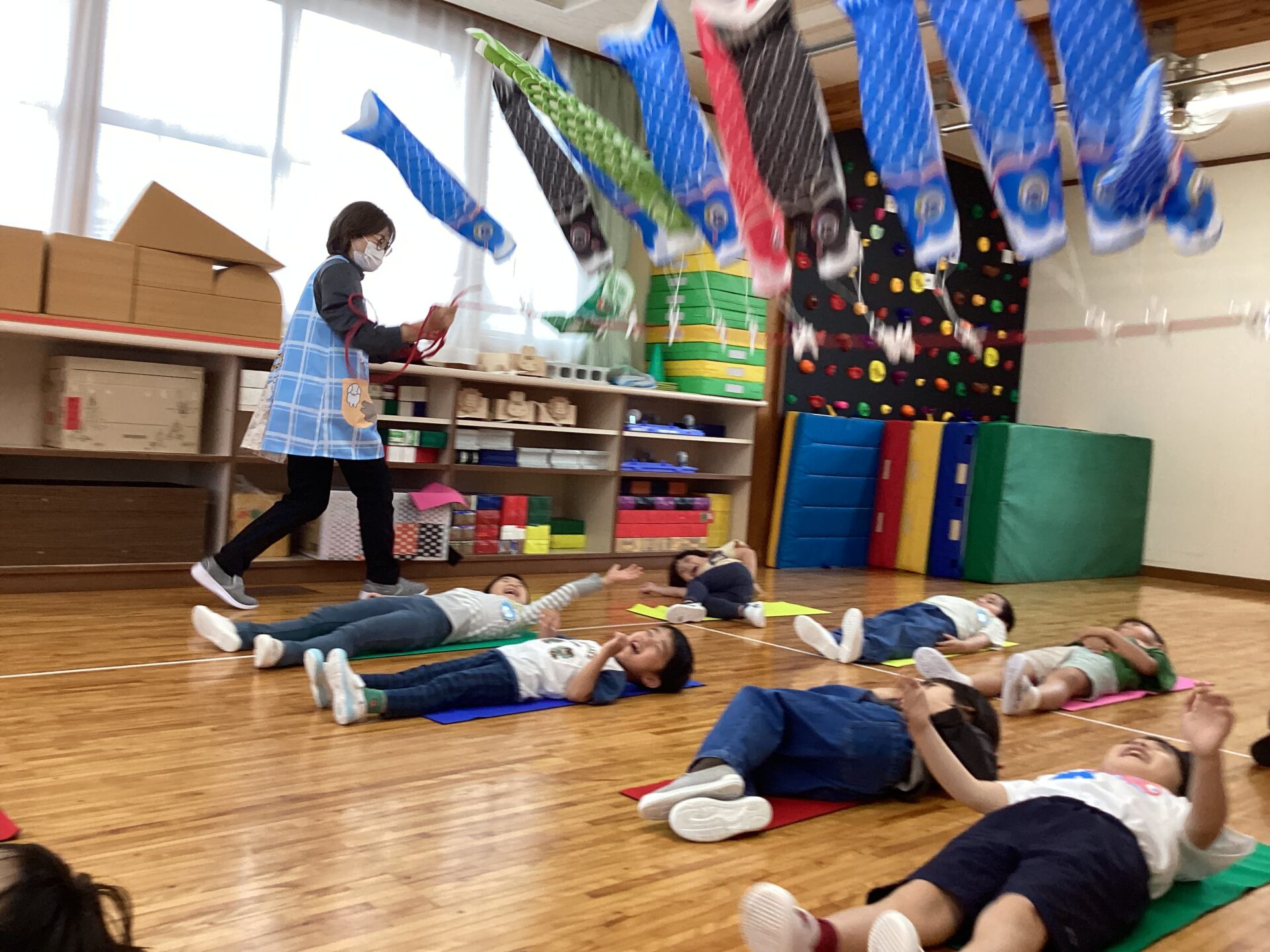 ジャンプをしてこいのぼりを洗濯バサミにかけにいくこと
