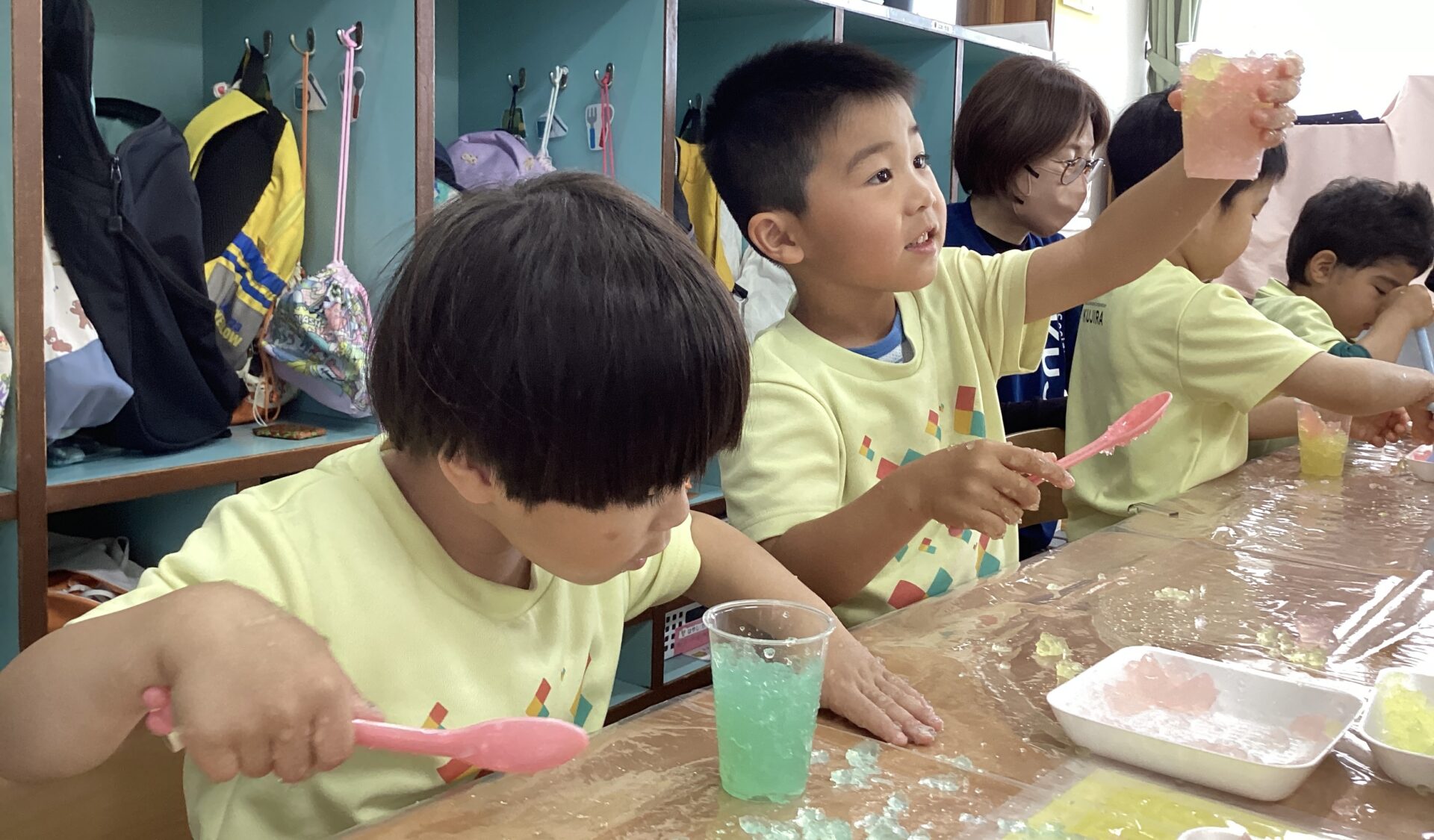 遊び(寒天あそび、絵の具遊びなど)を繰り返す中で、理解が広がっていくといいなと思います。