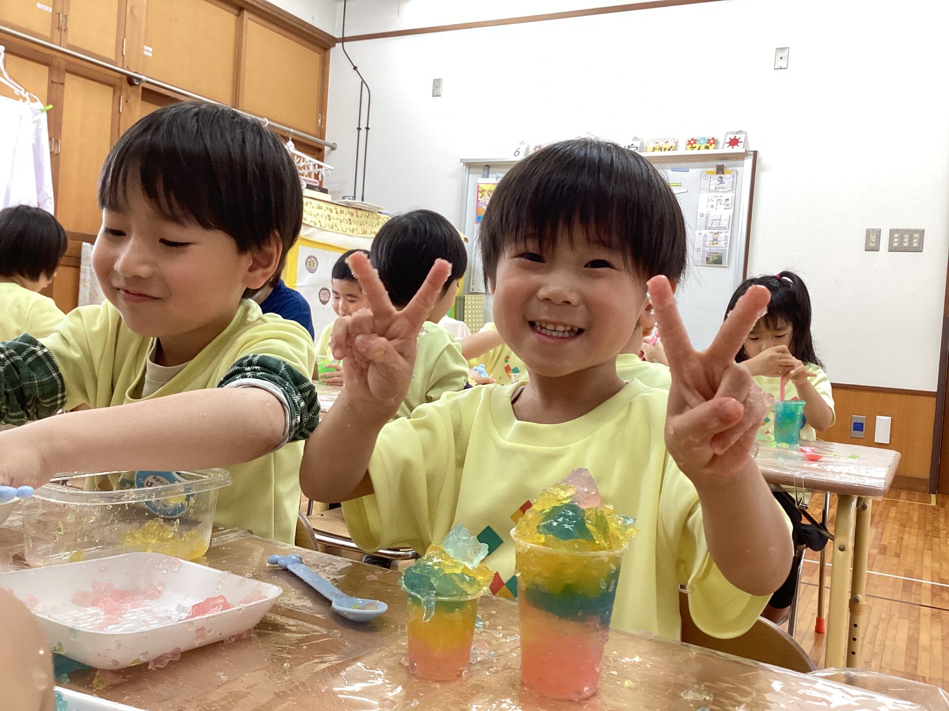 「かんてんゼリーだね!」と楽しみに登園してくる姿がありました。