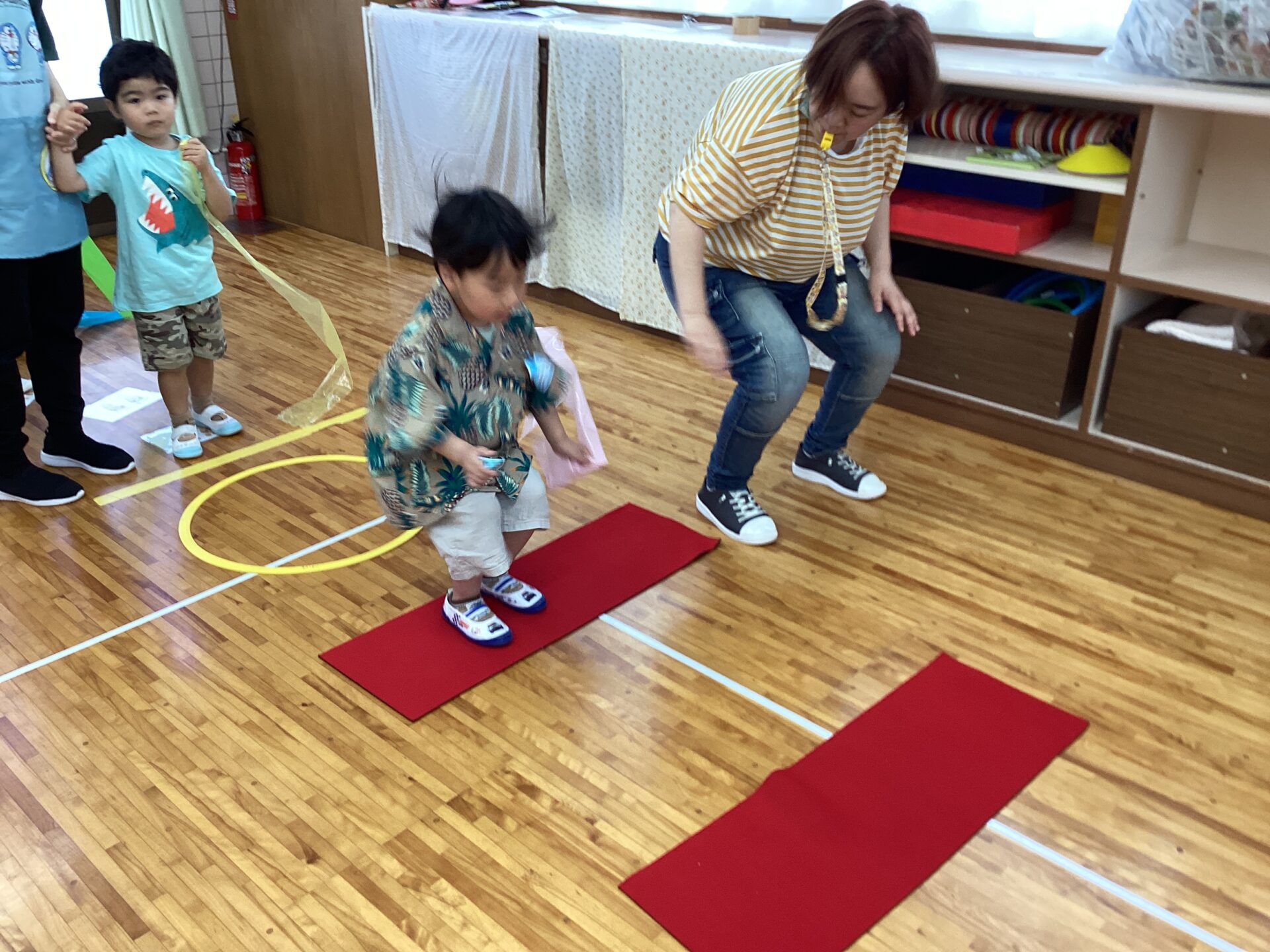 一緒に跳ぶことで意識して音楽を聴くようになり、リズムをつかもうとする姿が見受けられました♪
