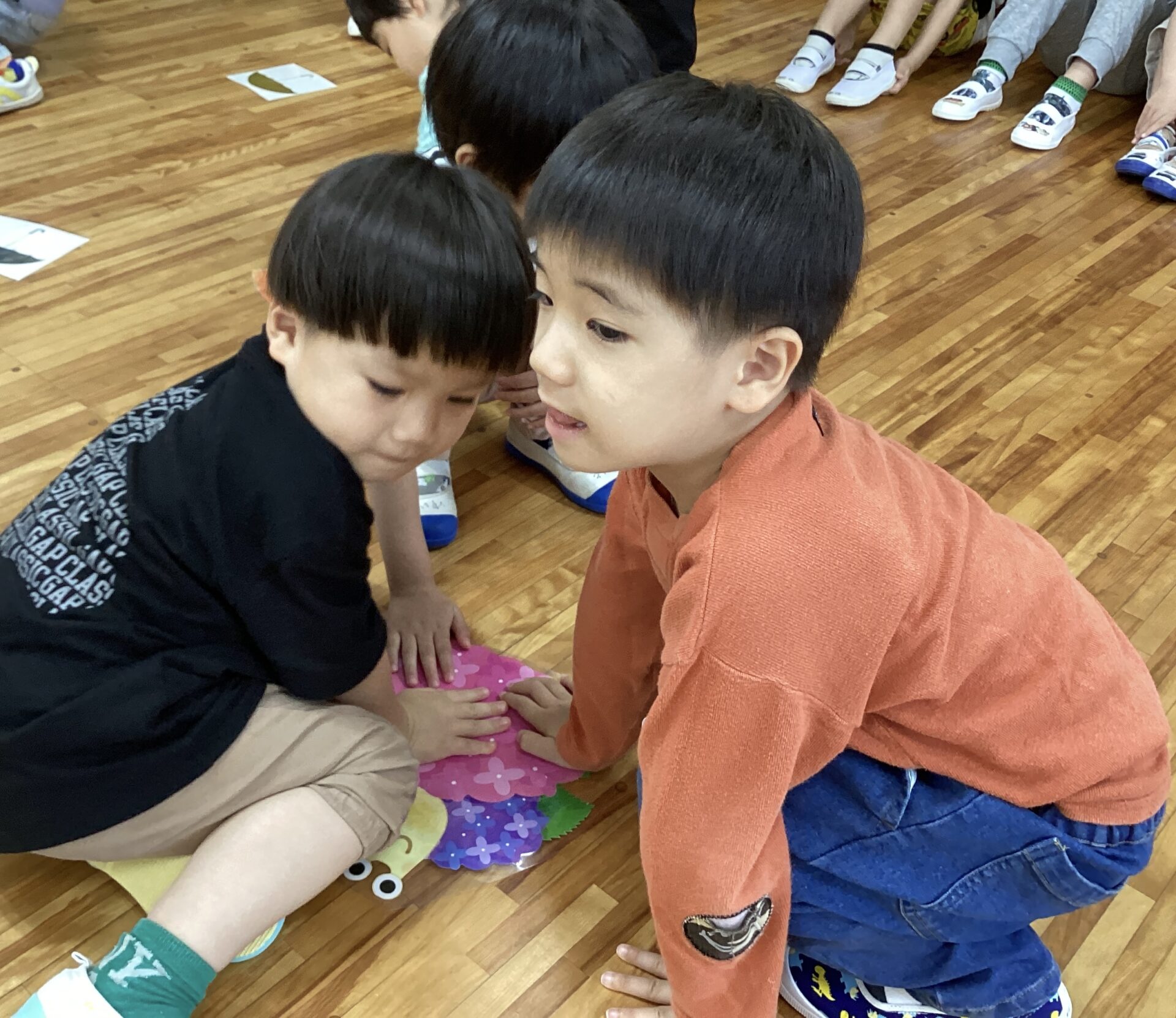 目と手を同時に使うことは、日常生活のボタン留めやハサミの使用、三輪車などにも繋がっていきますので、継続していろいろな活動を行っていく予定です。