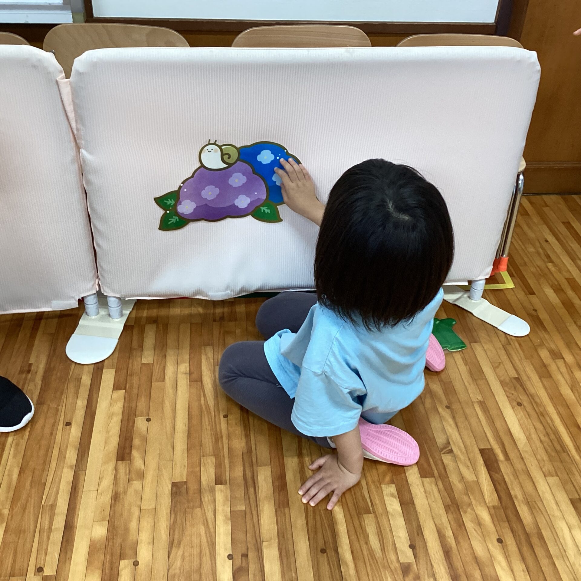 6月ならではのイラストを部屋に貼って、タッチする遊びです。