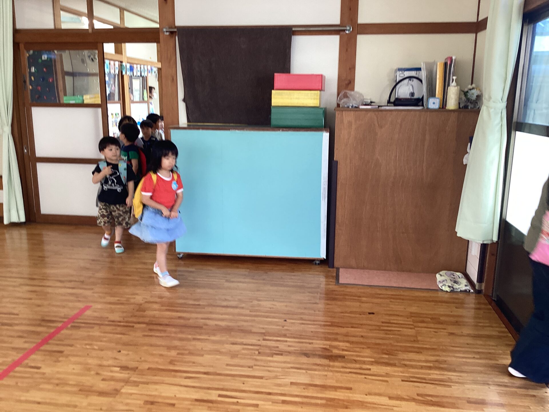 今月の避難訓練は、降園前の時間に
