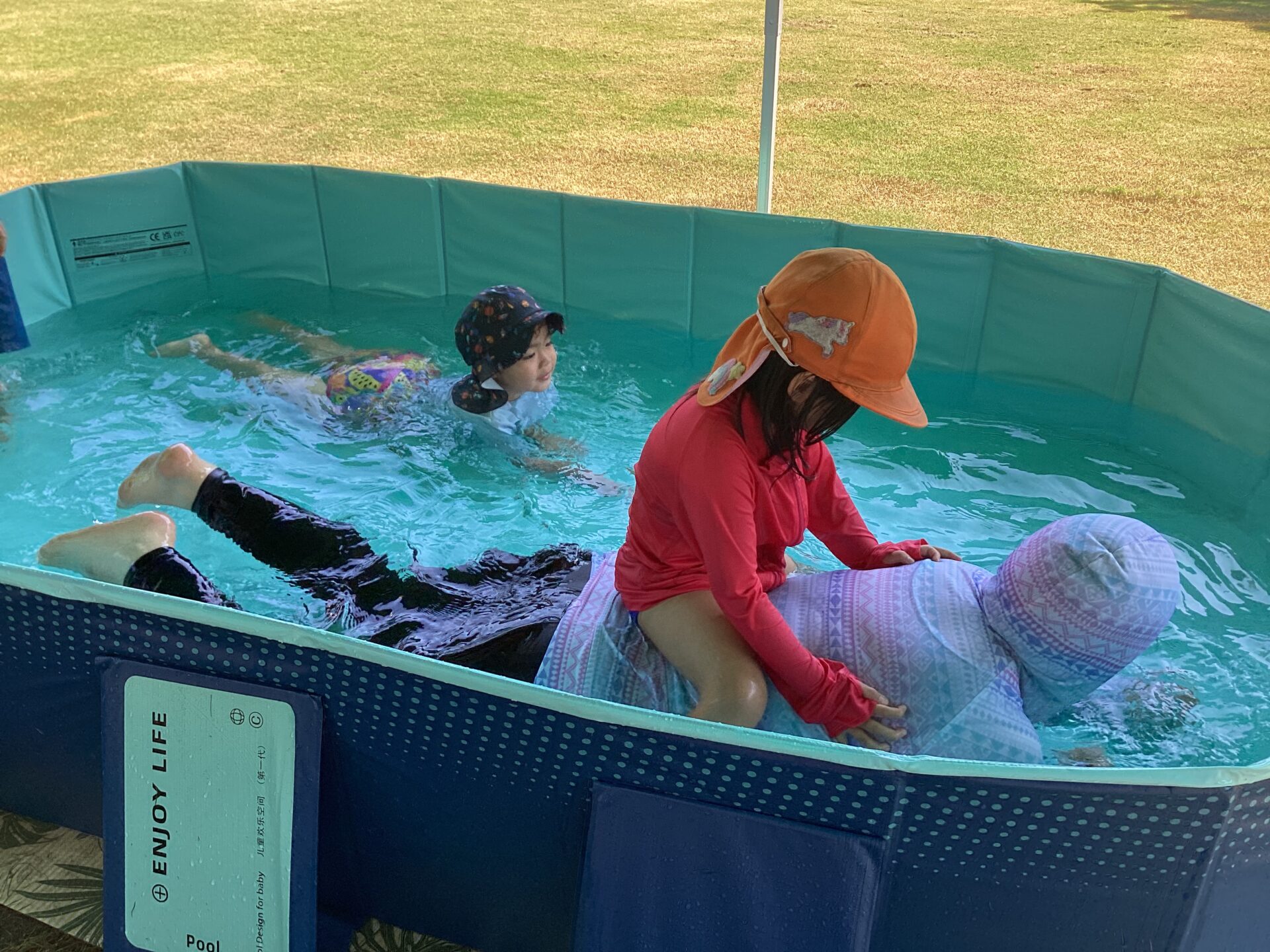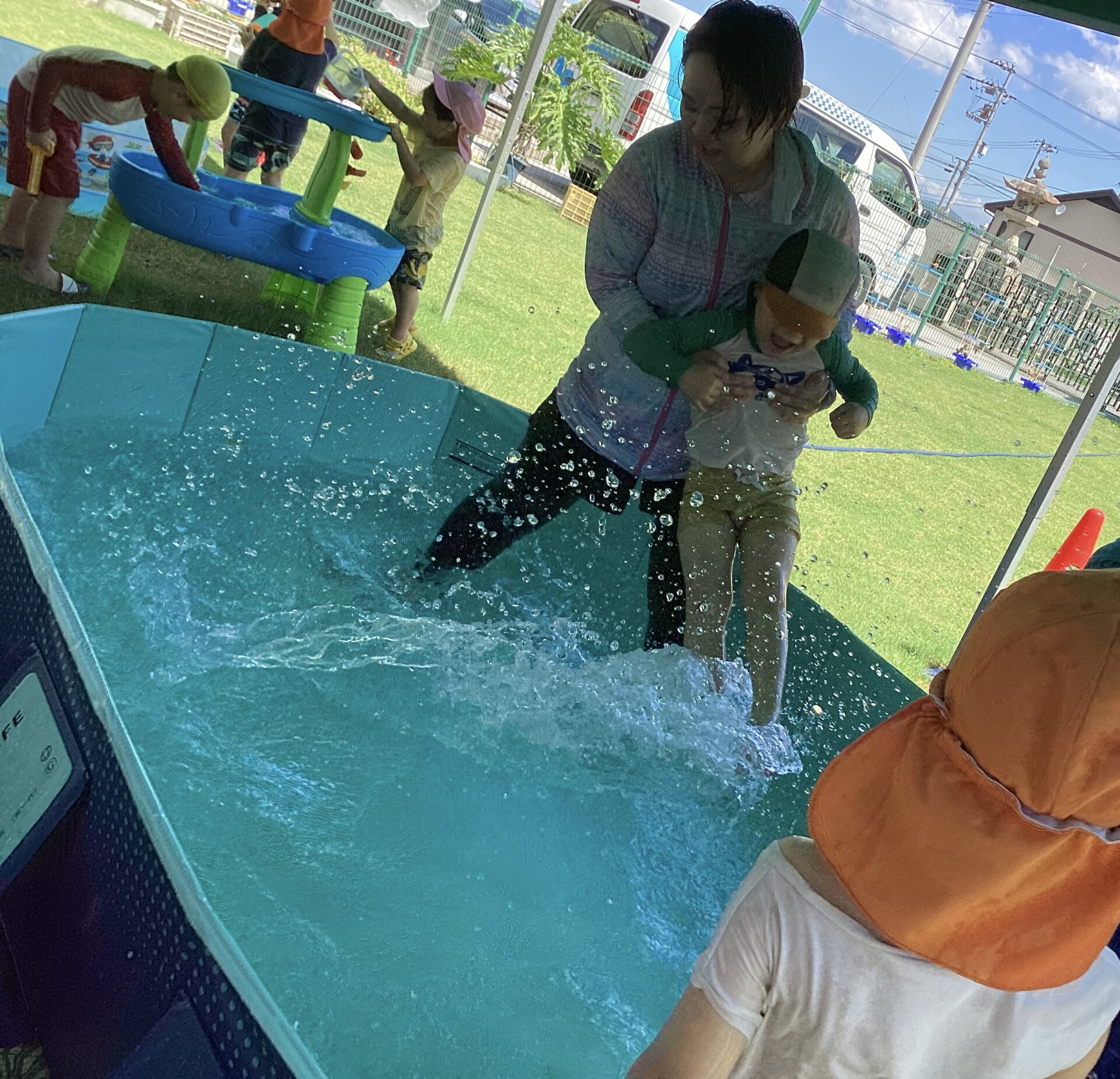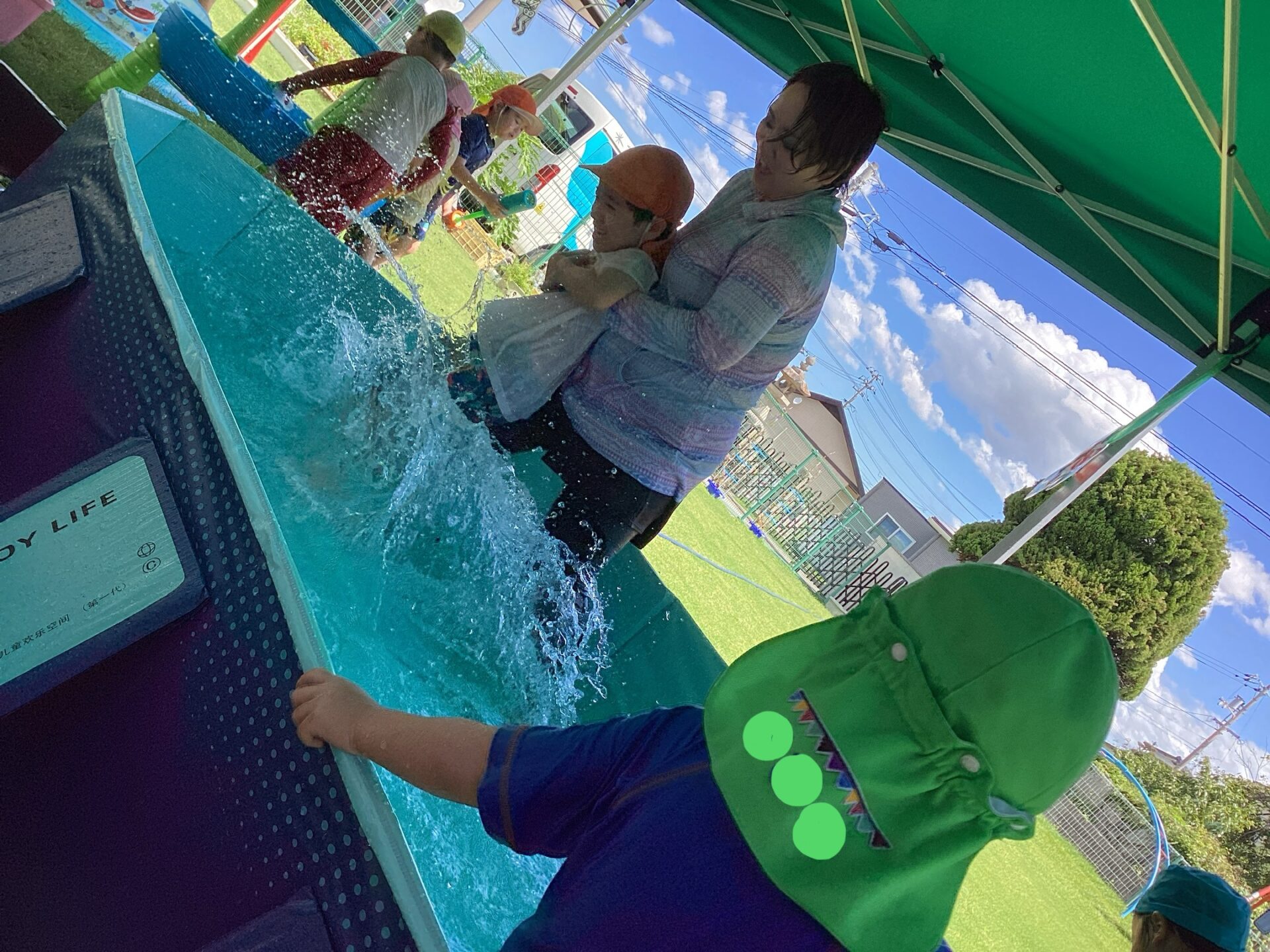脇を持って水面で揺らしてもらい、スプラッシュもなかなかの人気です。「ぼくも〜」「Sくん(自分の名前)」と要求して繰り返し楽しんでいますよ😆💦