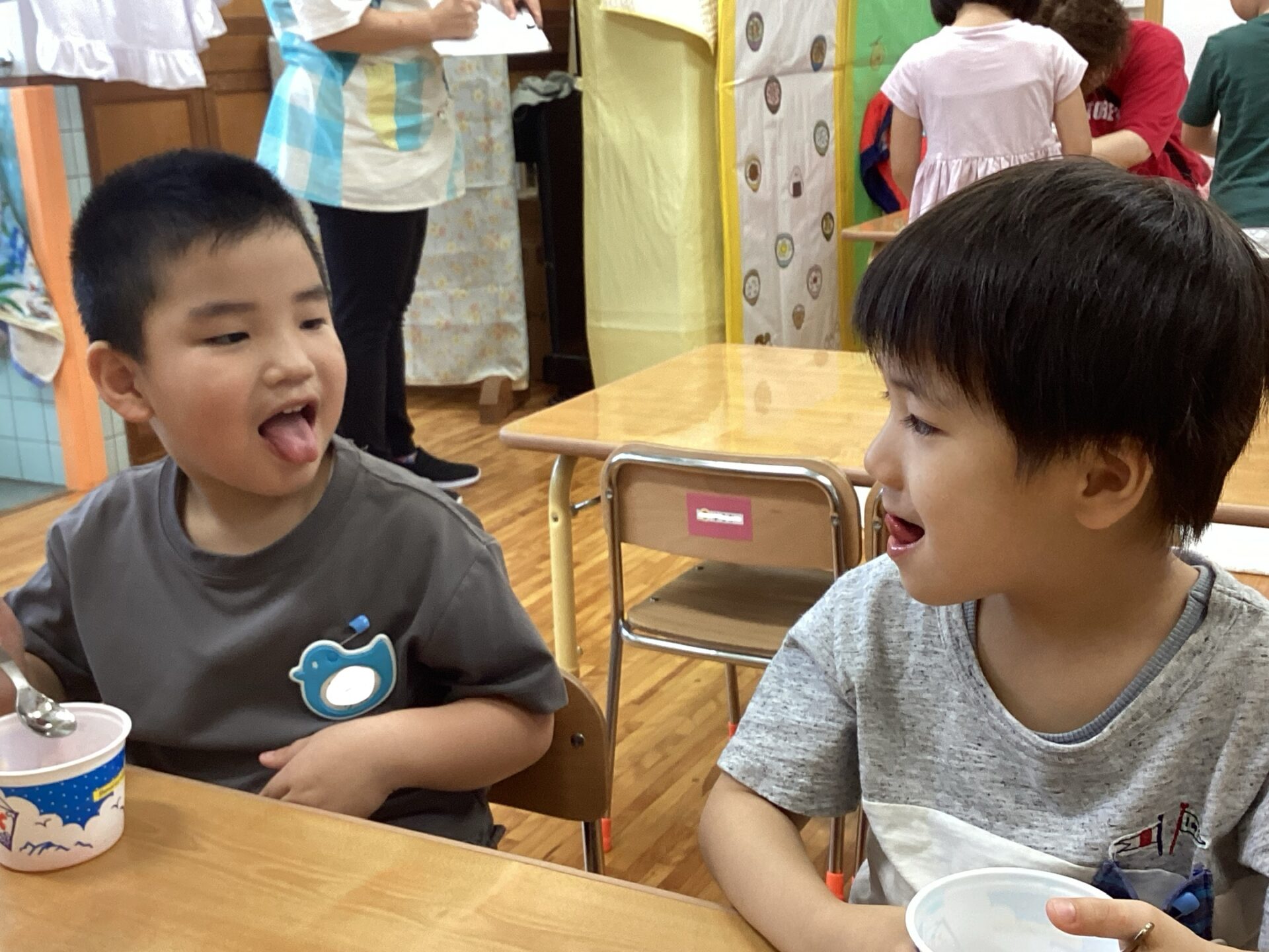 友だち同士で見せ合いこしたり、大人に嬉しそうに見せてくれたりと大盛り上がりでした👅