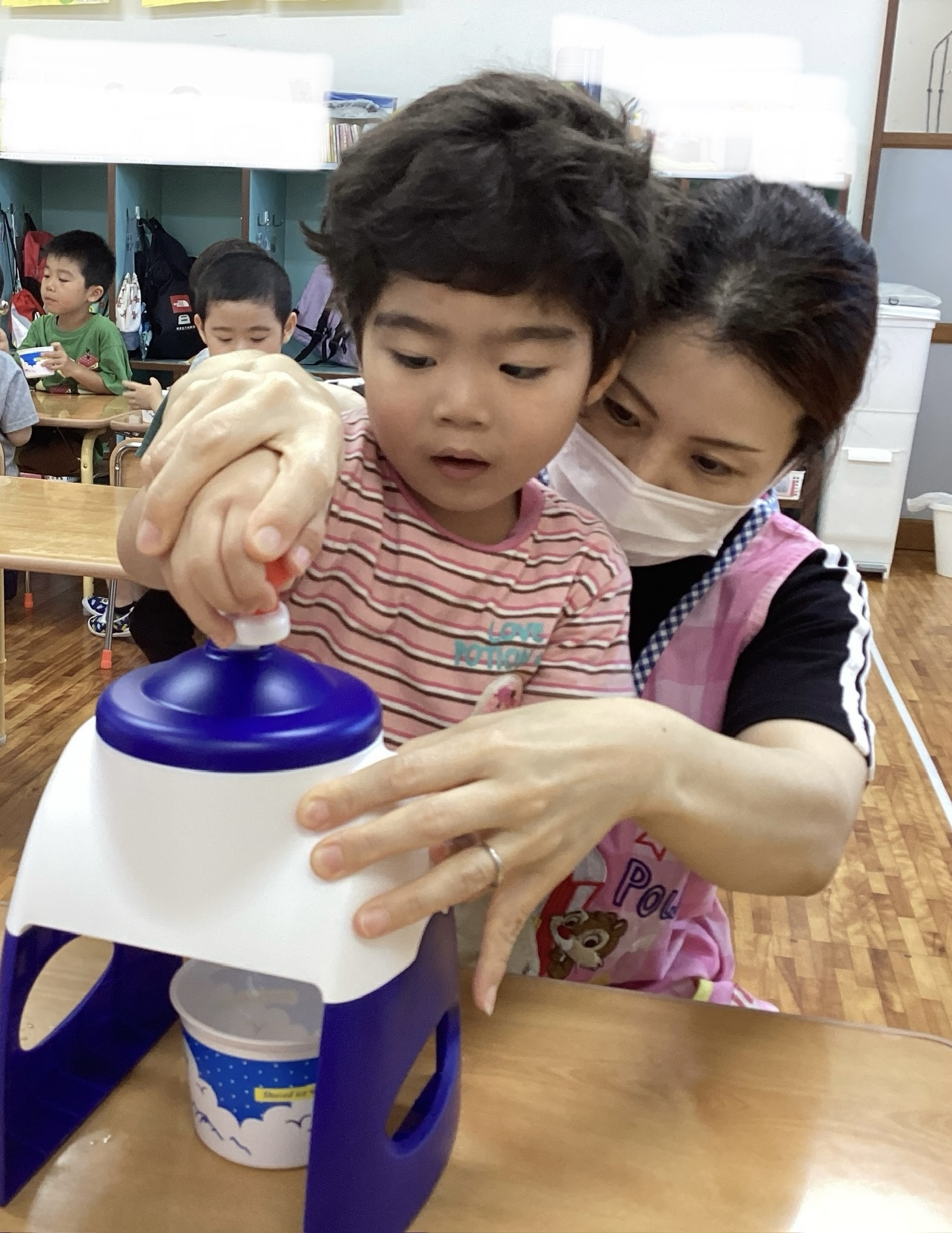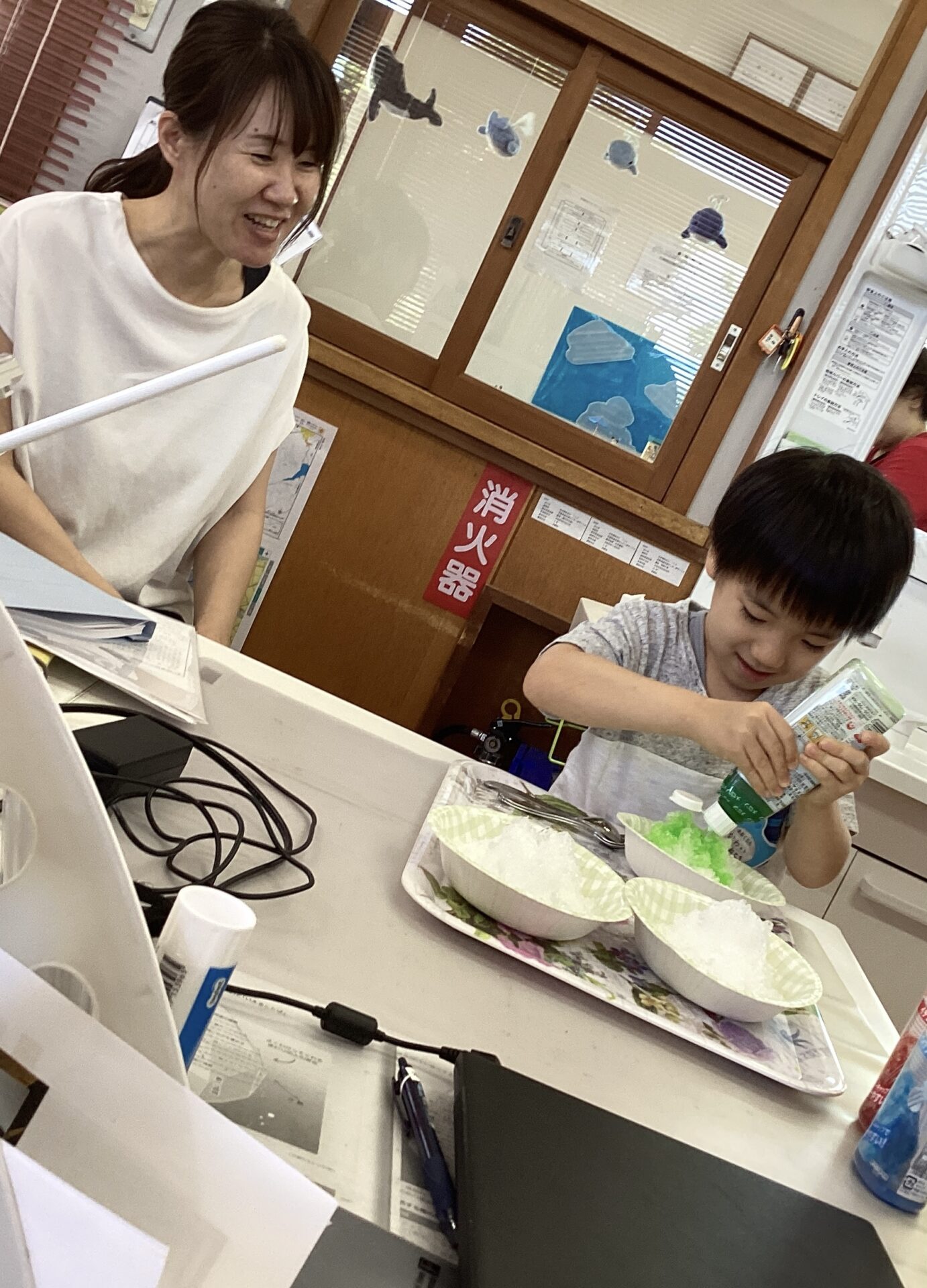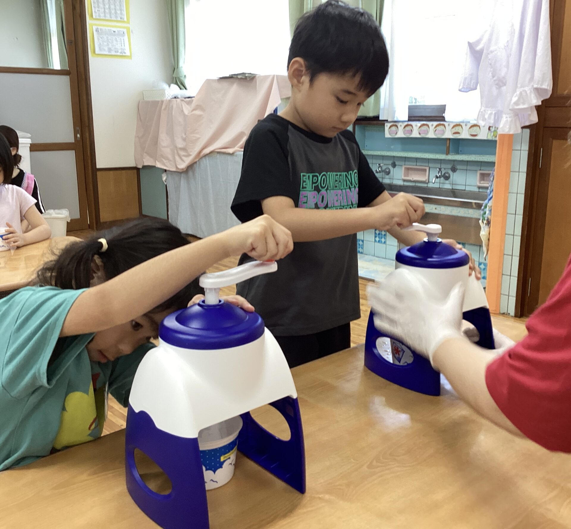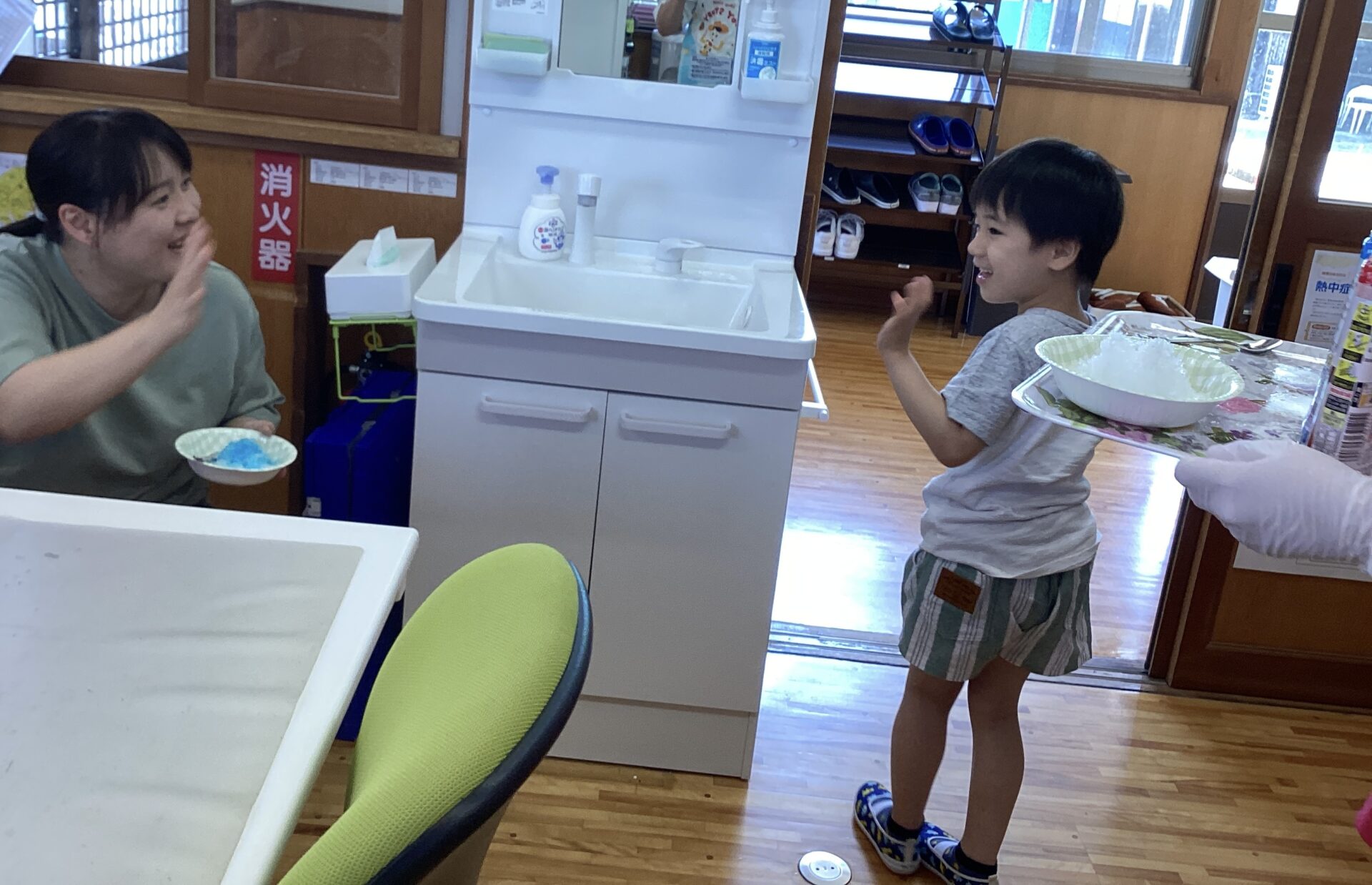 7月31日(木) 子どもたちとかき氷を作って食べました🍧