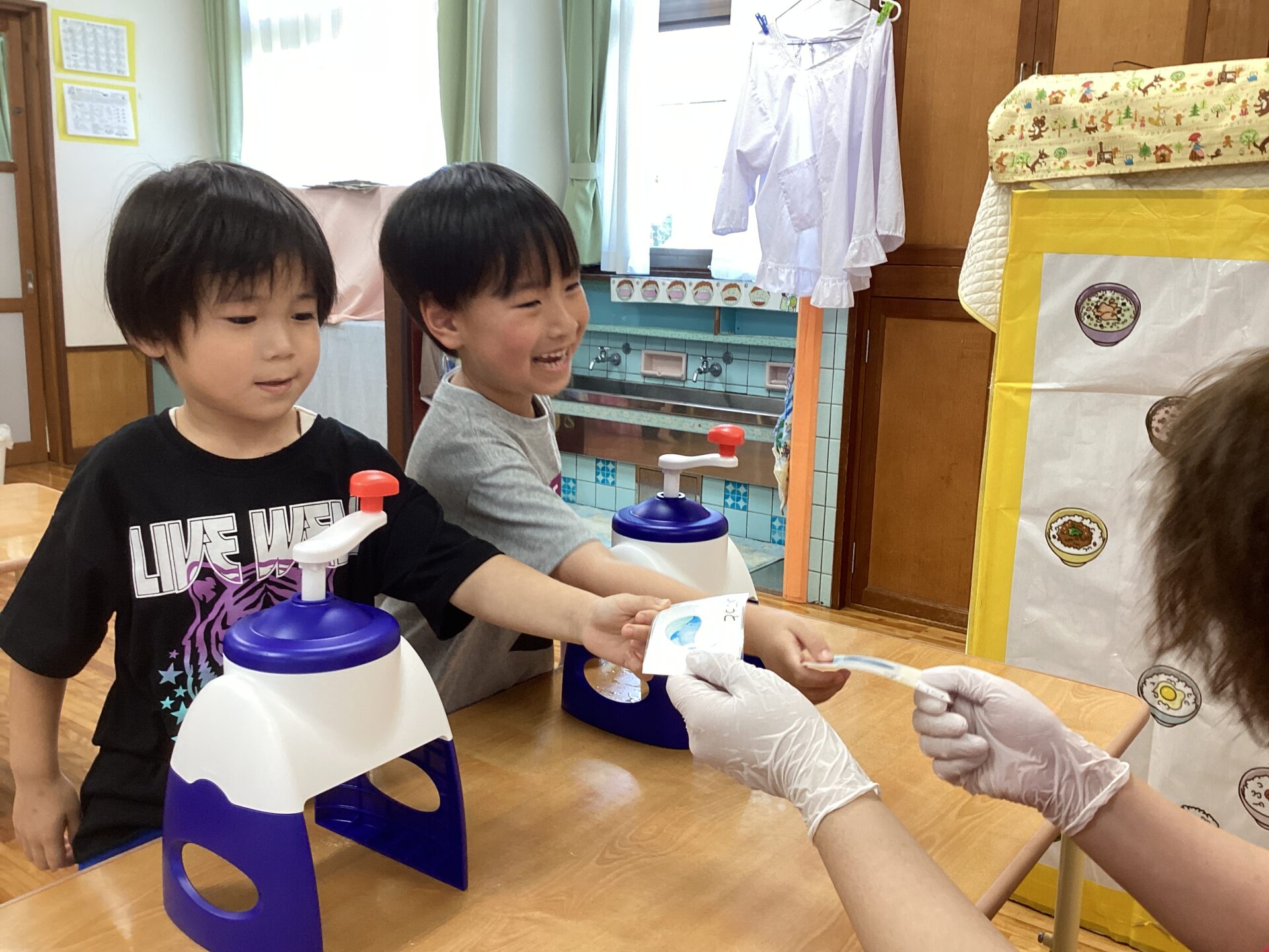 チケットを受け取ると「かきごおりください!」と伝えたり、作りたいの!というようにチケットを差し出したり姿が見られています🎫