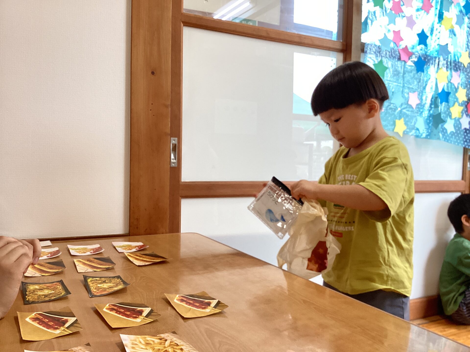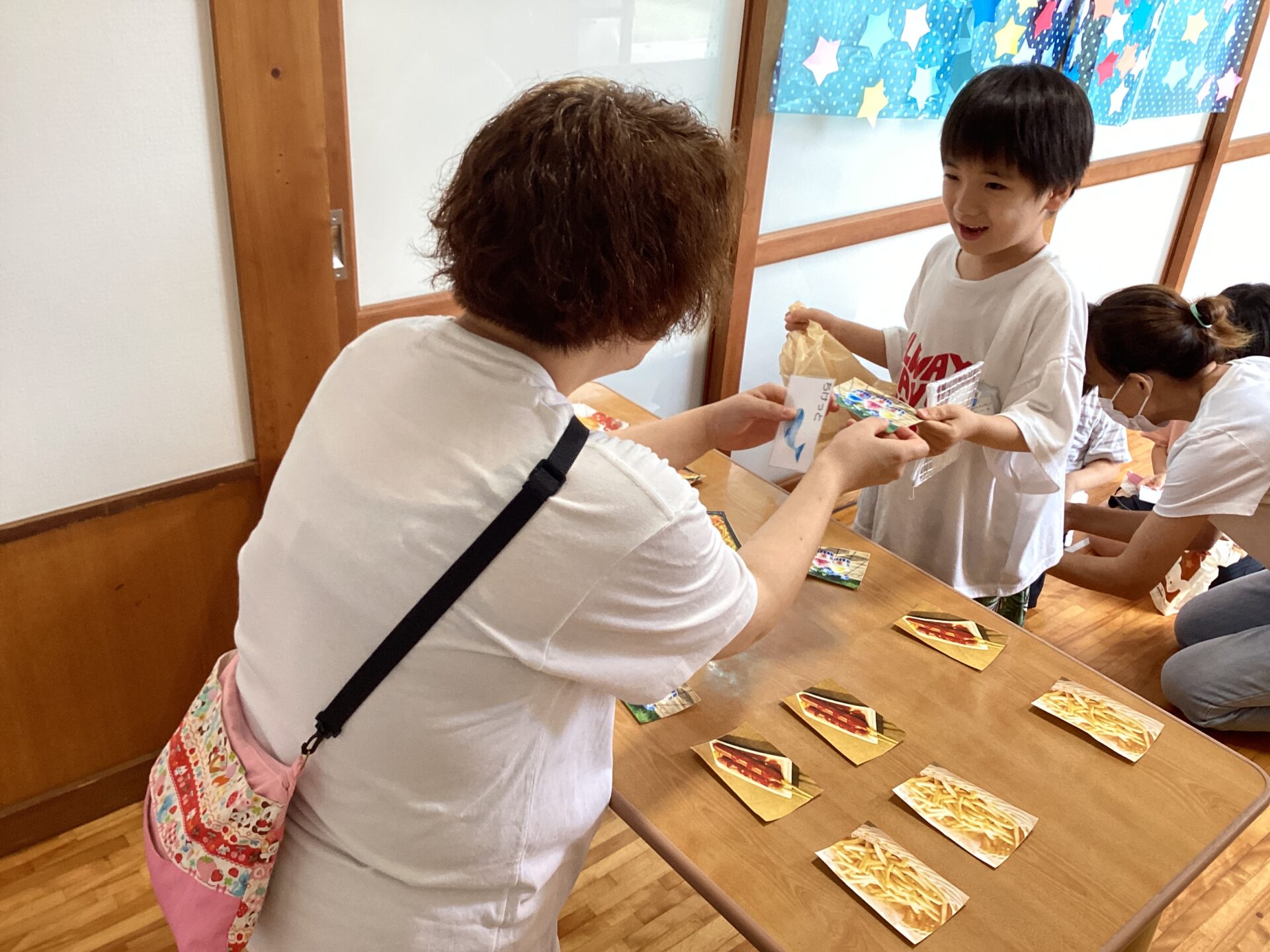 子どもたちが好きそうな夜店のメニューの写真を印刷してカードにしました🍧🍟🍎🌽