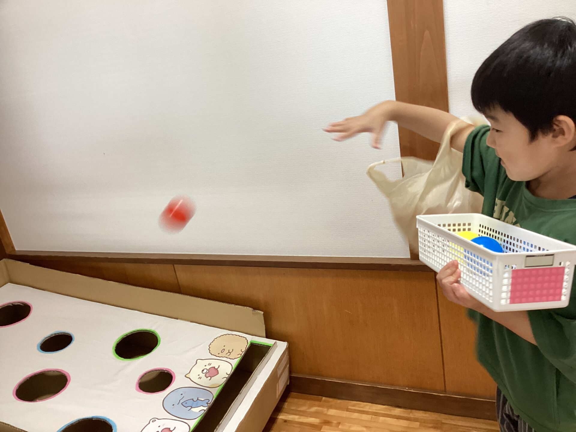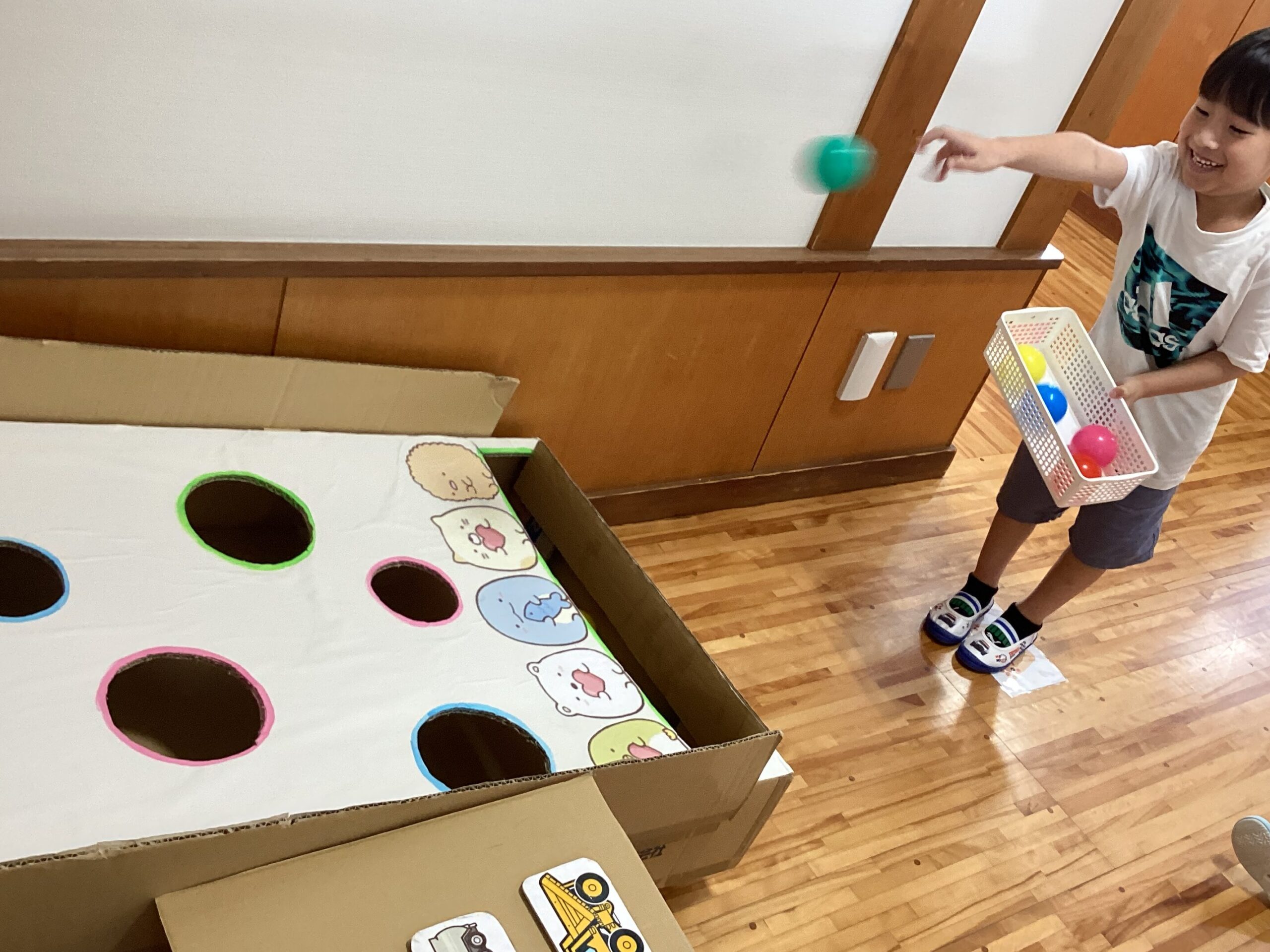 足型からボールを投げて、穴に入れることはできるかな?