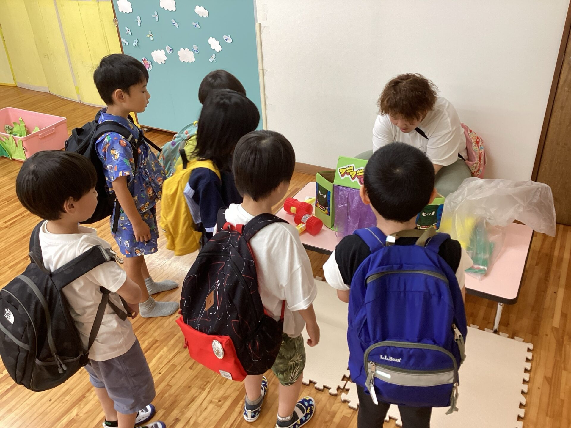 明日の夏祭りに向けて、あおくじらチームで夏祭りごっこをして遊びました。