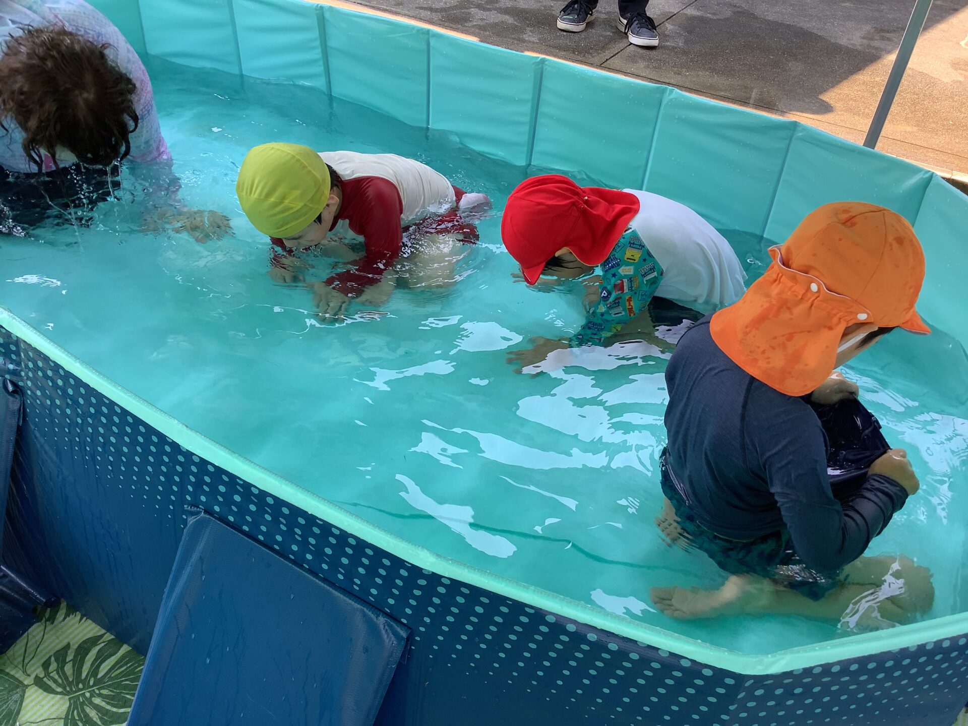 子ども同士刺激を受けながら、バタ足や顔付けにチャレンジする様子もあり、たくましくなった気がします✨