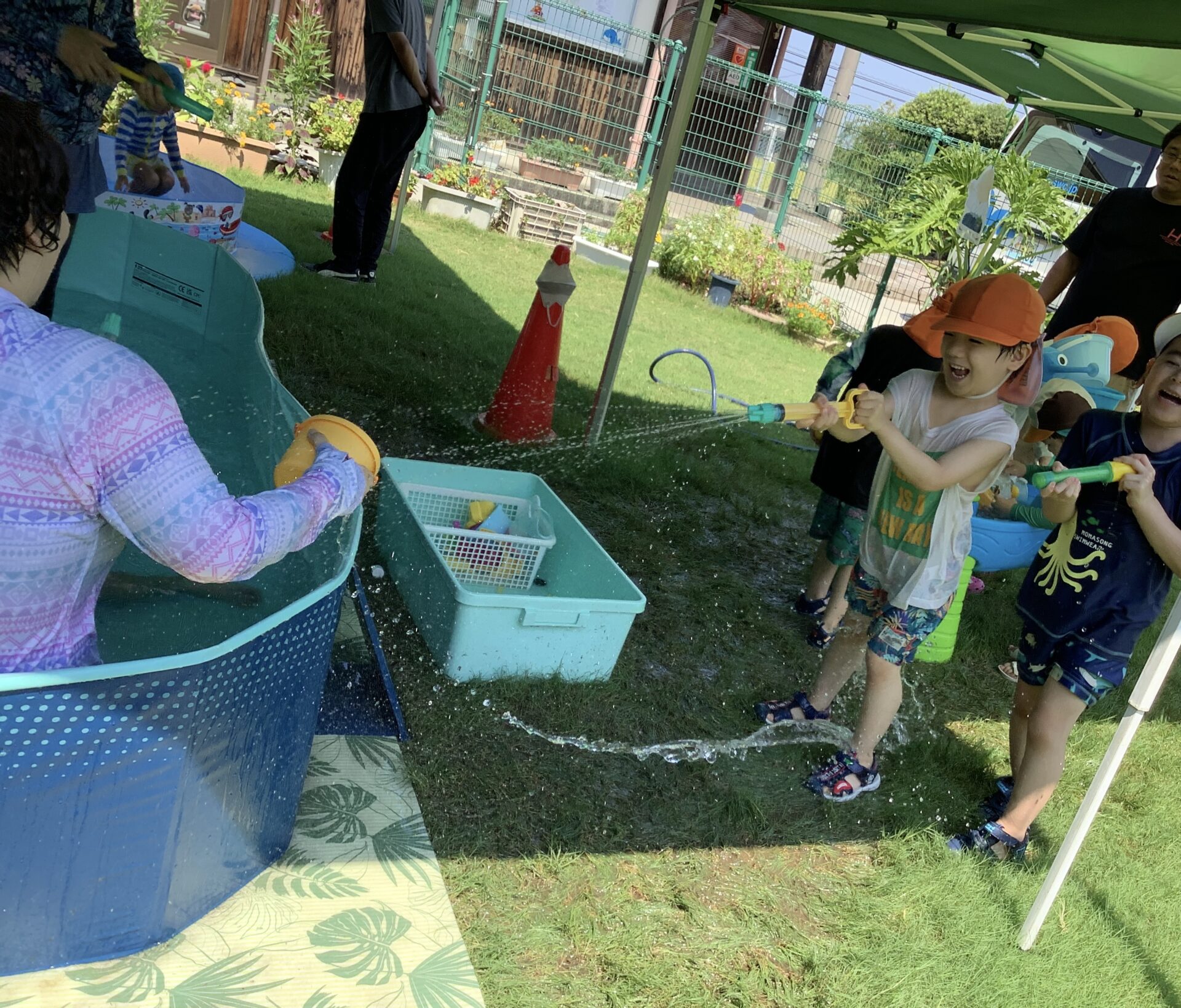 大人も全力で子どもたちと遊びますが、子どもたち容赦なしに水をかけてきます😆💦